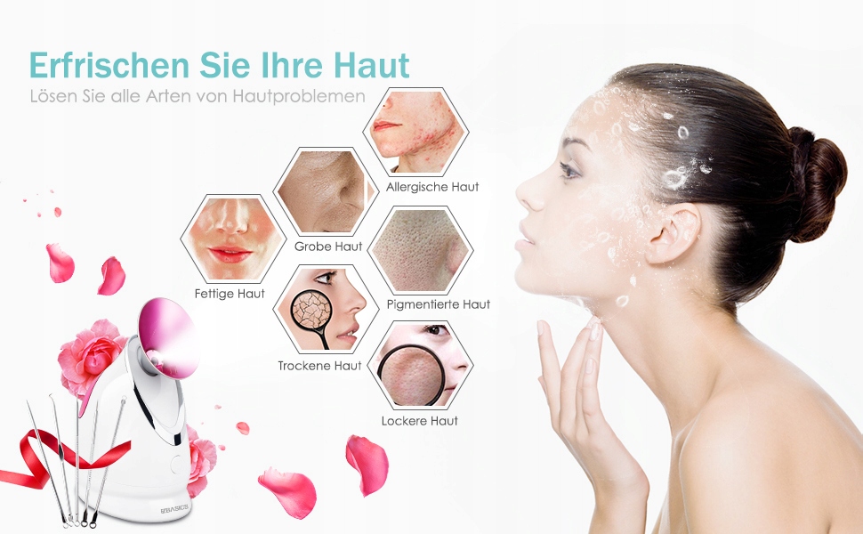 - Покращена технологія Nano Steam: новий паровий пристрій, який виробляє наноподібну пару. Nanodampf з іонними молекулами води проникає в шкіру в 10 разів ефективніше, ніж звичайний парогенератор гарячої води. Передова технологія для використання в дистильованій або очищеній воді для отримання хороших результатів. Налийте воду та увімкніть пристрій, щоб насолодитися сильним і заспокійливим туманом за 30 секунд. Розслабтеся та насолоджуйтесь потоком пари приблизно 10 хвилин