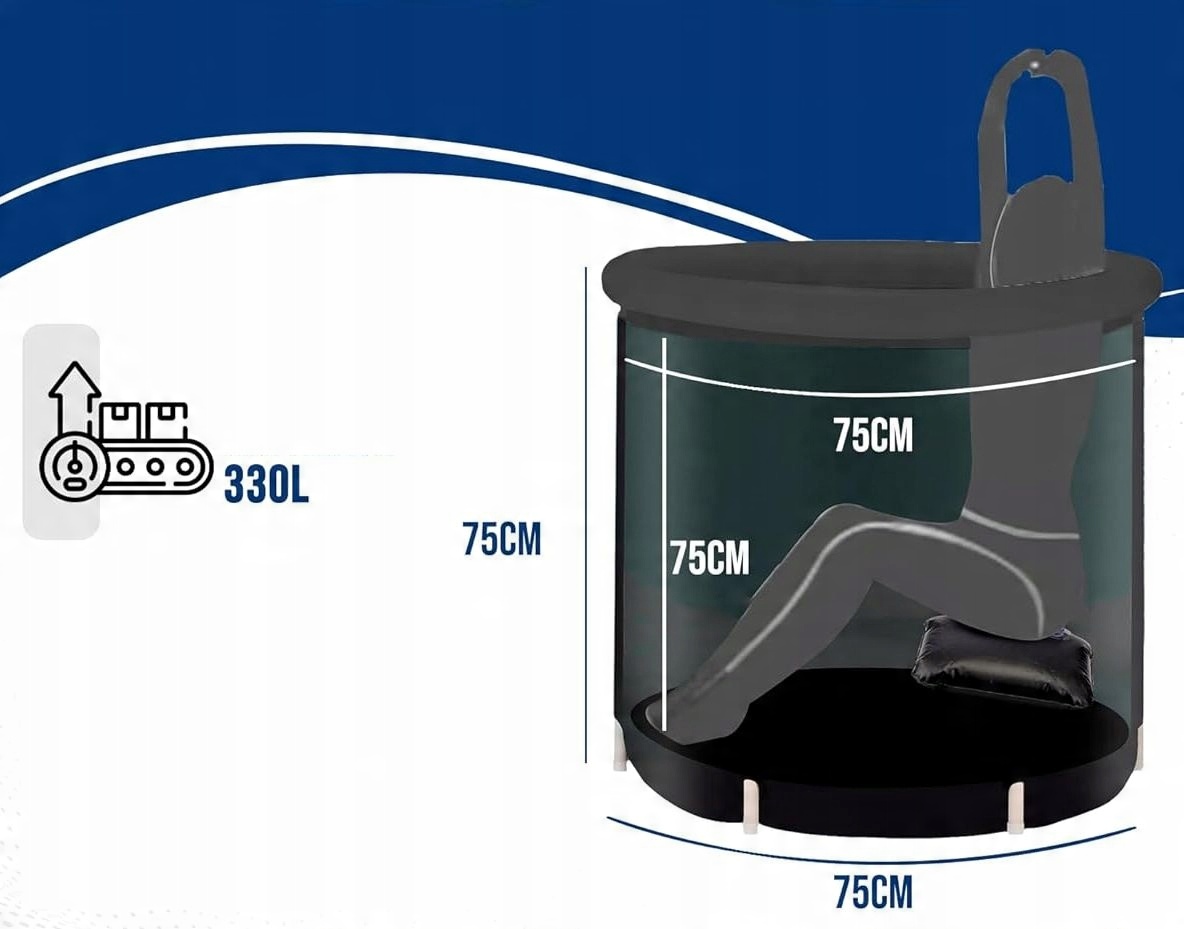 - Ідеально для носіння: Наша портативна ванна з розмірами Ø 75 х 75 см надає спортсменам та любителям фітнесу можливість морозива після тренувань та підтримки регенерації м’язів та циркуляції. Тепла ванна стимулює метаболізм, покращує настрій та покращує якість сну. Наша ванна підходить для людей до 2 м заввишки.
