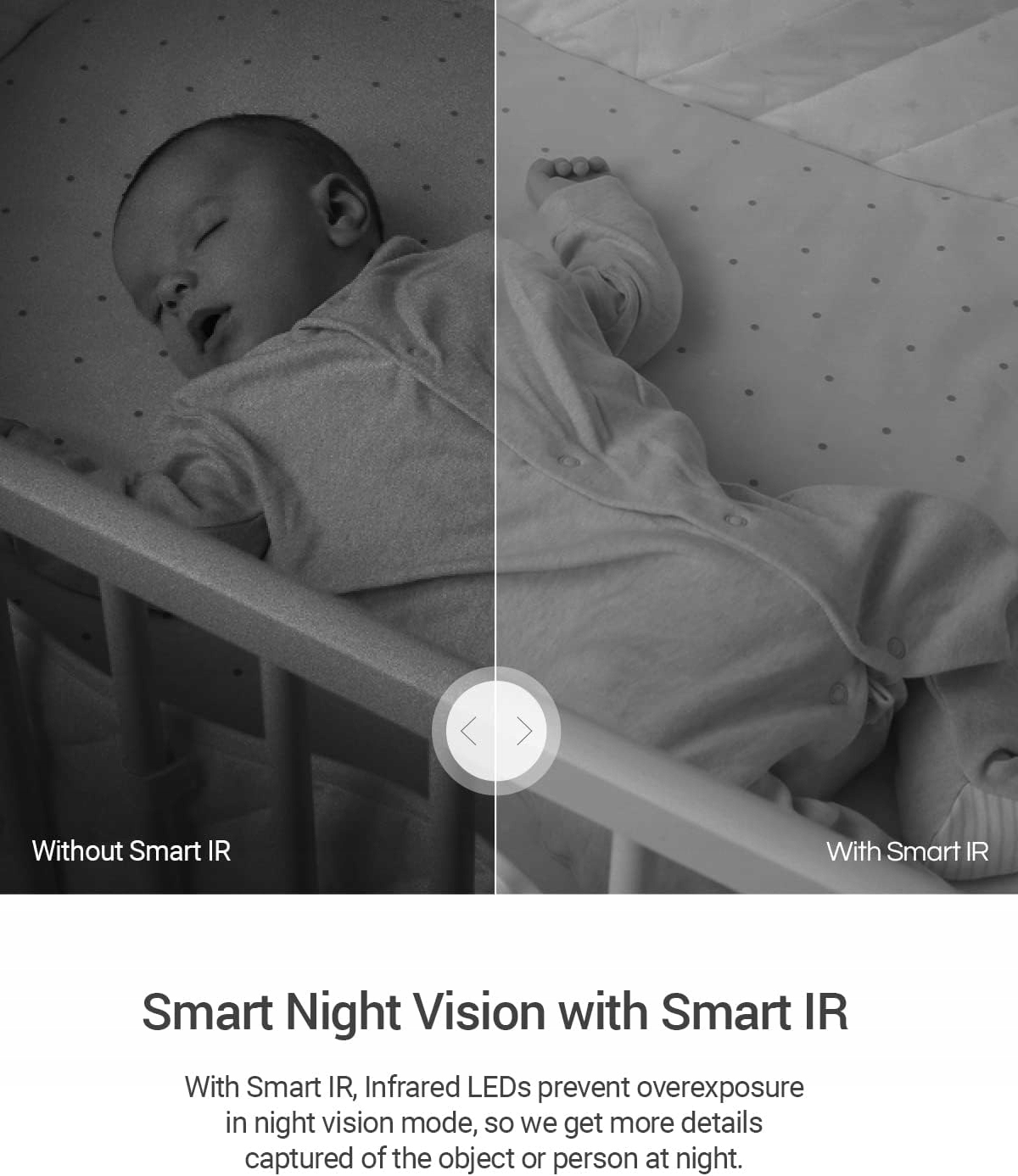 Нічний режим камери вмикається автоматично, коли рівень освітленості навколо камери падає. У цьому режимі камера спостерігає за сценою в чорно-білому режимі за допомогою ІЧ-освітлювача з радіусом дії 10 м.