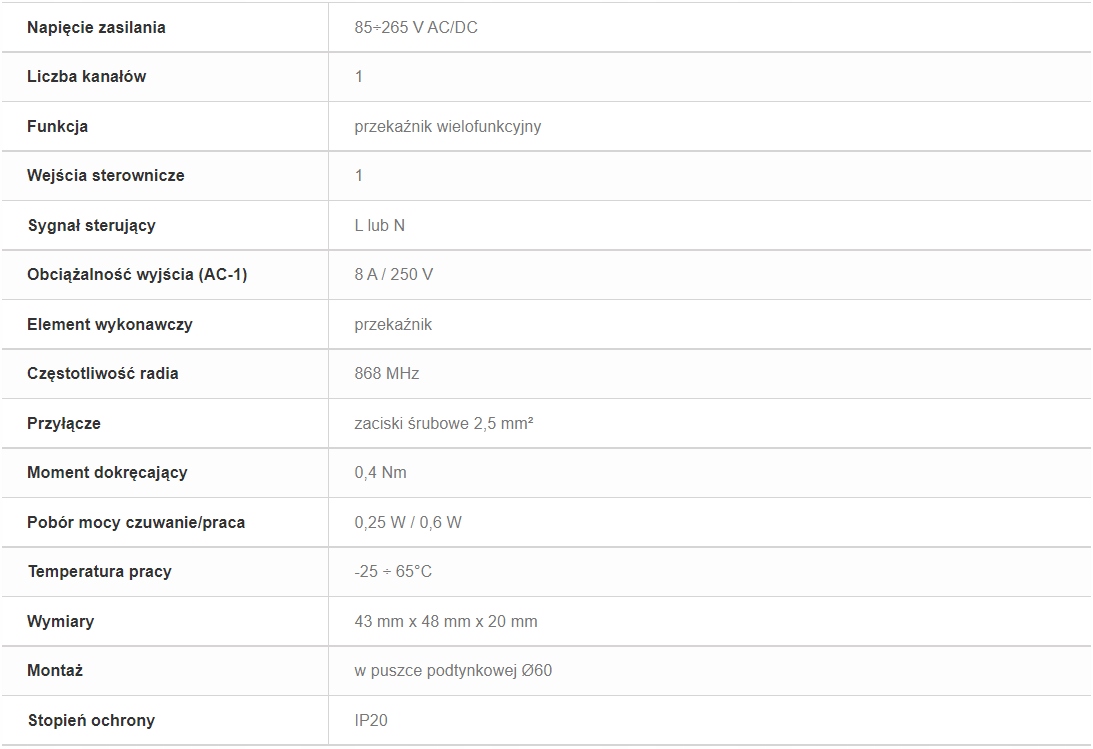 Багатофункціональне 1-канальне бістабільне реле. Призначений для установки в коробку для прихованого монтажу Ø60.