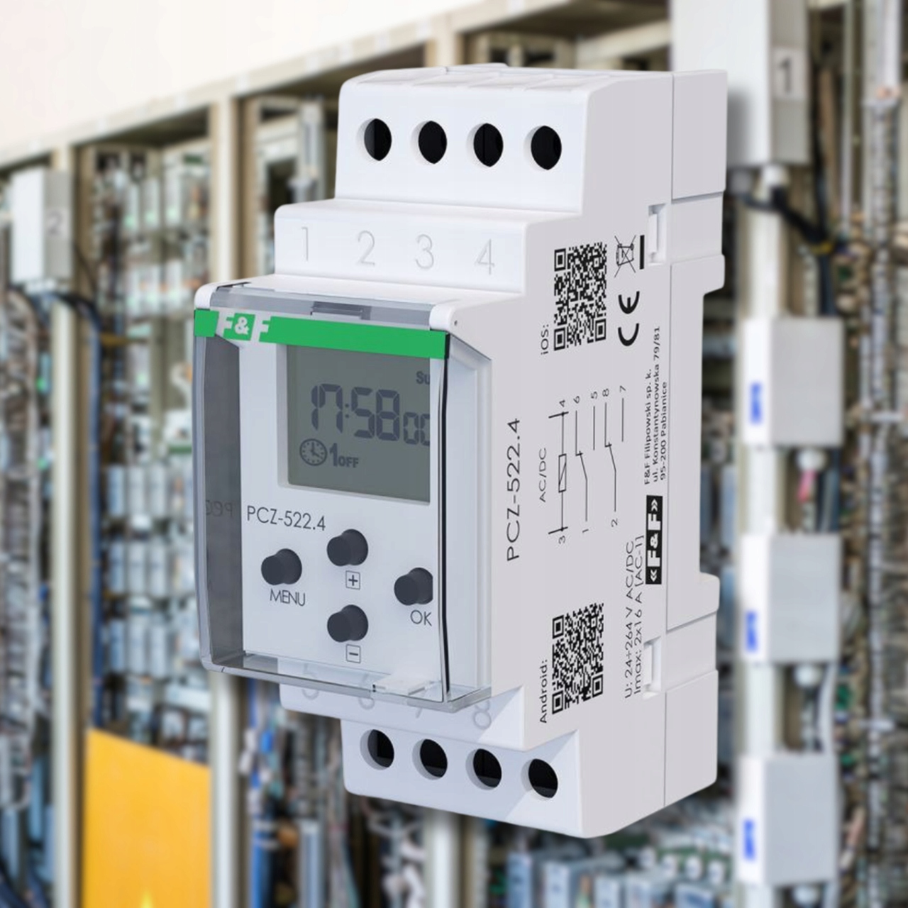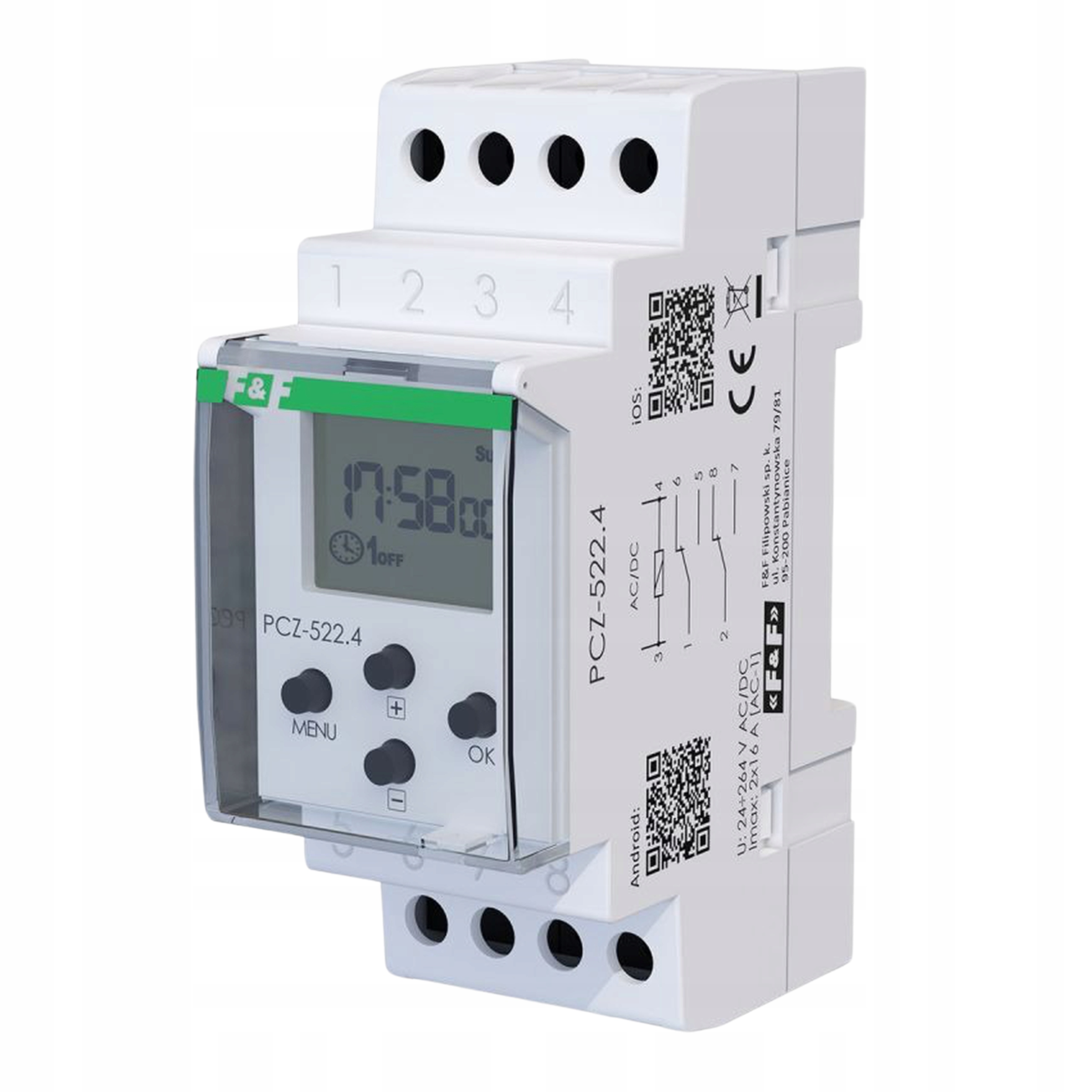 F&F Programmer 2 Channel Weekly Configuration iOS Android PCZ-522.4 — це вдосконалений програмований контрольний годинник, який дозволяє точно керувати часом роботи пристрою в домашніх і промислових системах автоматизації. Завдяки можливості налаштування через смартфон (iOS/Android) забезпечує сучасну та зручну роботу. Двоканальний дизайн і до 500 комірок пам'яті дозволяють створювати складні розклади, адаптовані до індивідуальних потреб.