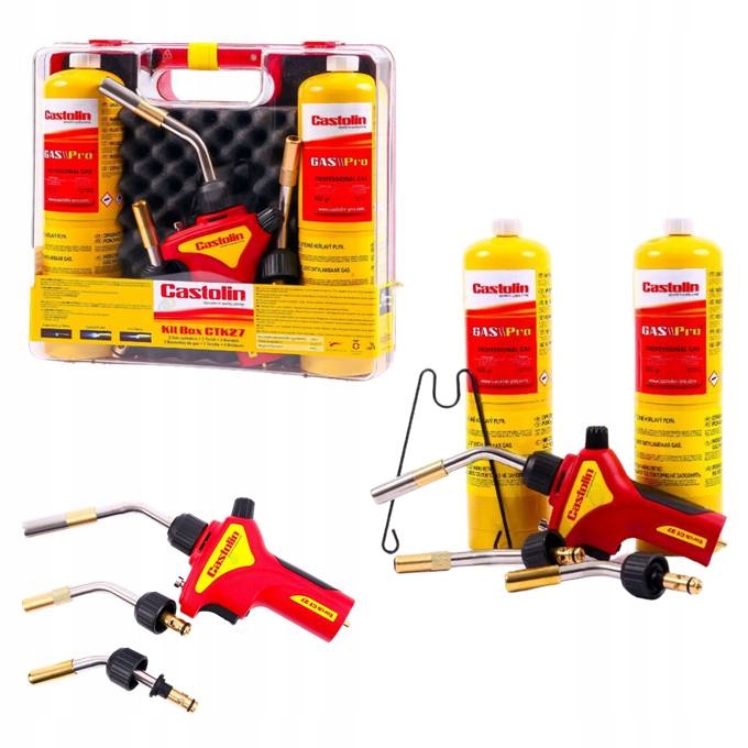 Він складається з двох пальникових газових балонів ємністю 400 грам кожен. Цей газ ідеально підходить для роботи з нагвинчуваним пальником CT 27. Він містить суміш метилацетилену та пропану. Завдяки термопарі він досягає робочої температури до 2100 °C. Циліндр підходить для підключення типу CGA 600. Наступний елемент - це пальник CT27 з п'єзоелектричним запальником.