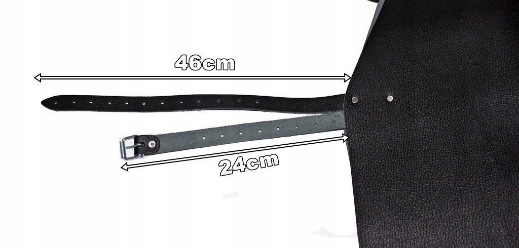 Передній шкіряний фартух на шию, регулюється, застібається на пряжку.