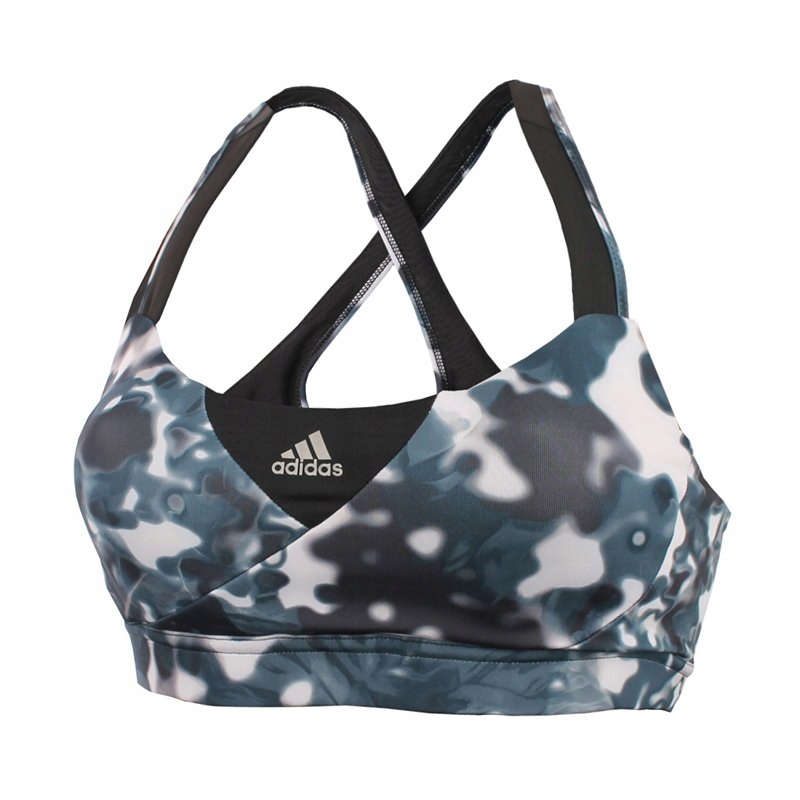Бюстгальтер для бігу та інтенсивних фітнес-тренувань з графічним принтом. Він має елегантну обробку і його можна носити як єдиний шар спортивного одягу. Сітчасті елементи сприяють вентиляції, а система Climacool відводить зайве тепло і вологу за межі одягу. Жорсткі чашки та гумка під лінією грудей забезпечують кращу посадку.