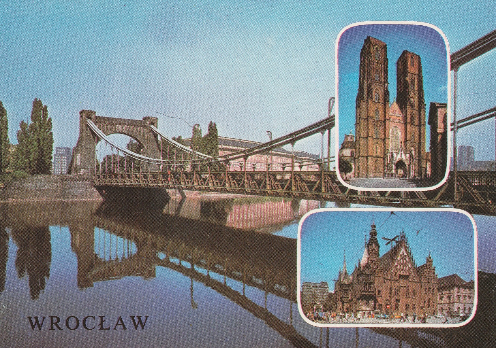 F760. Вроцлав, Грюнвальдський міст, Кафедральний собор, Ратуша, Листівка 60-70-ті роки