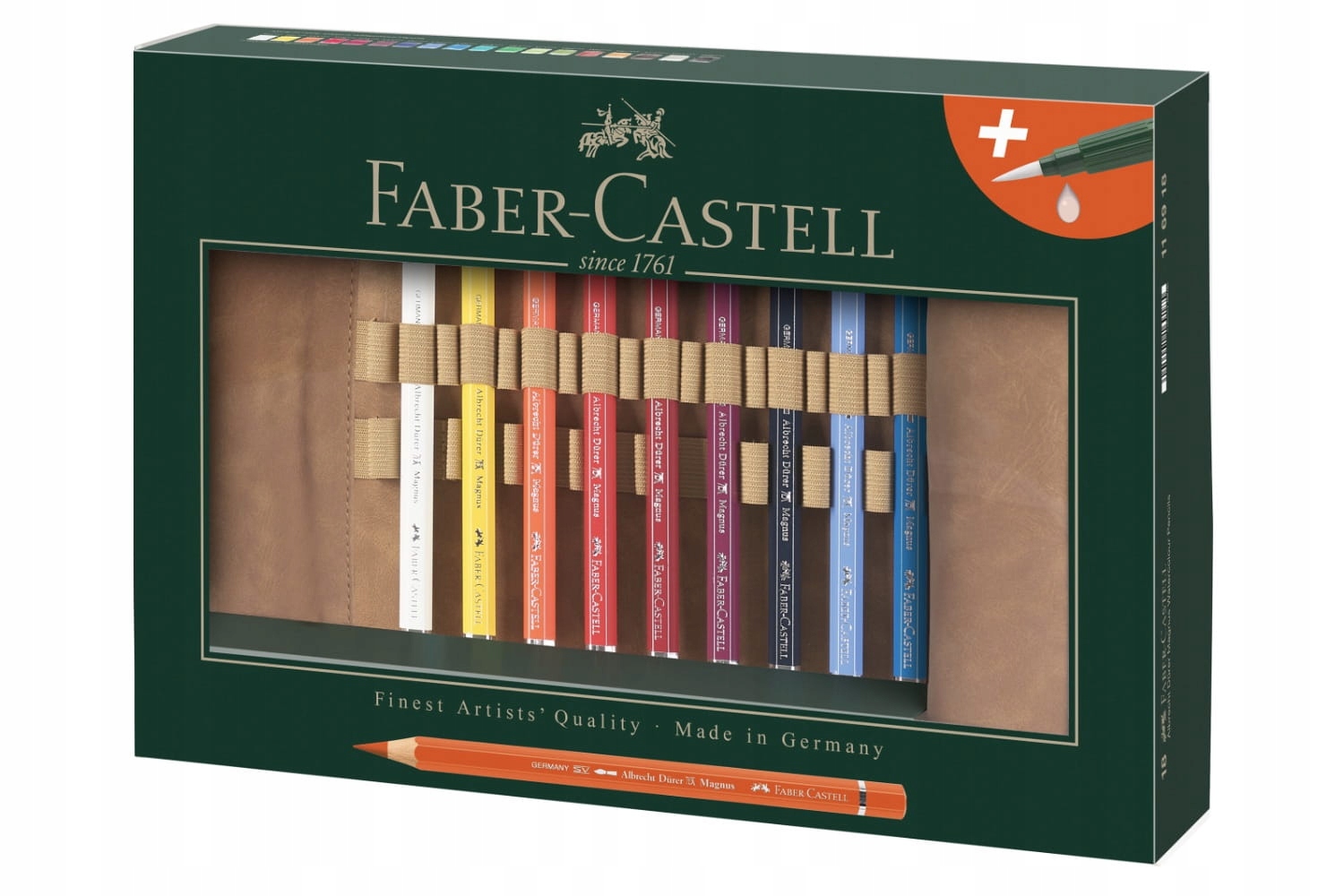45 аксесуарів включають: 18 акварельних олівців A.Durer Magnus і акварельний пензель Faber-Castell.