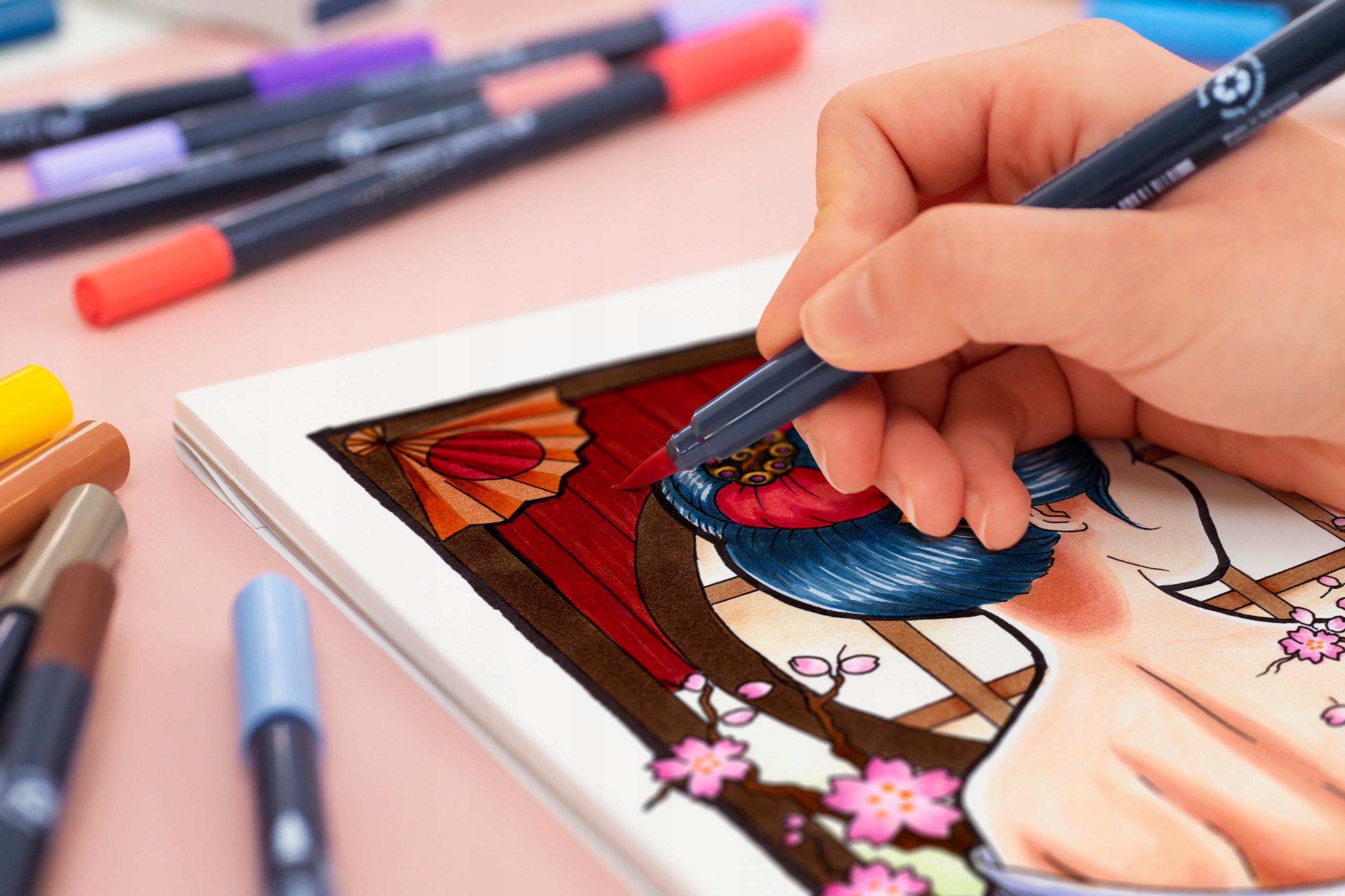 - Вони мають два наконечника: м’який, гнучкий кінчик пензля для художніх завдань і тонкий кінчик 0,6 мм для контурів і деталей.