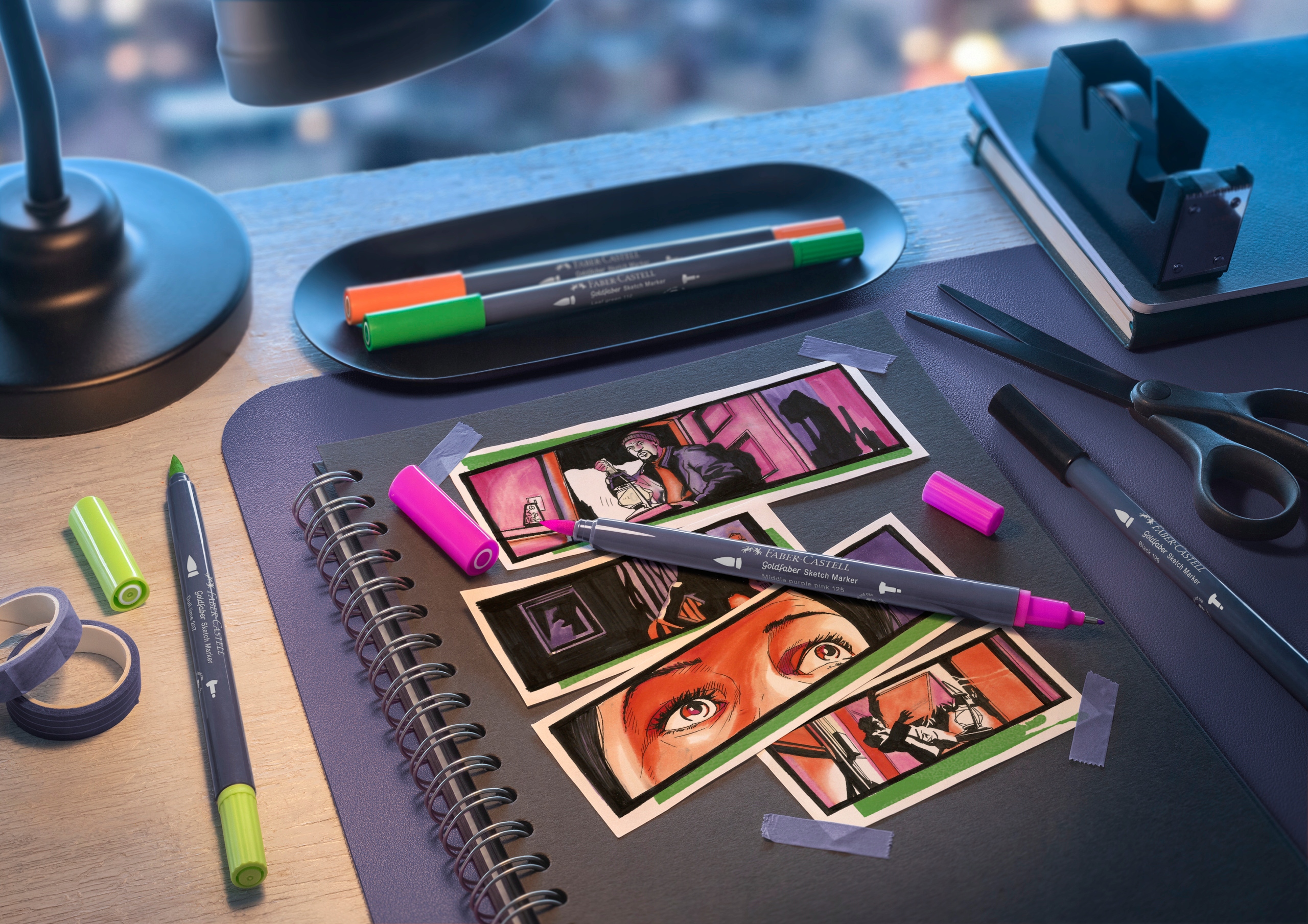 - Набір двосторонніх маркерів Goldfaber Sketch Faber-Castell 24 штуки - включно з блендером.