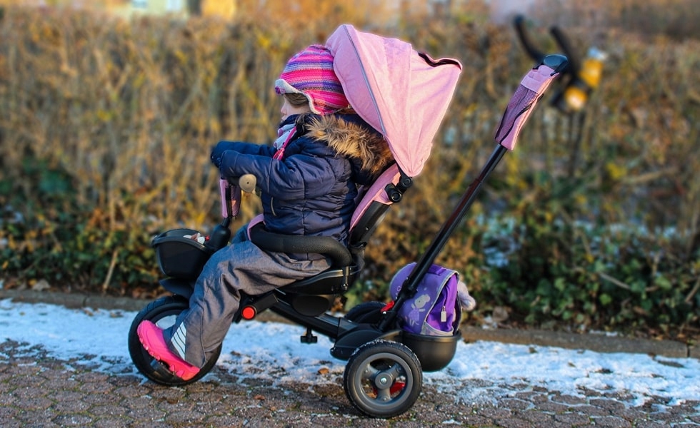 Автоматичне вільне колесо забезпечує дезактивацію педалі. Таким чином, невелика триколісна їзда може інтенсивно педалі, не кладучи триколісний велосипед у русі - батьки визначають напрямок та швидкість. Коли потомство вичерпується, воно може поставити ноги на підставки.