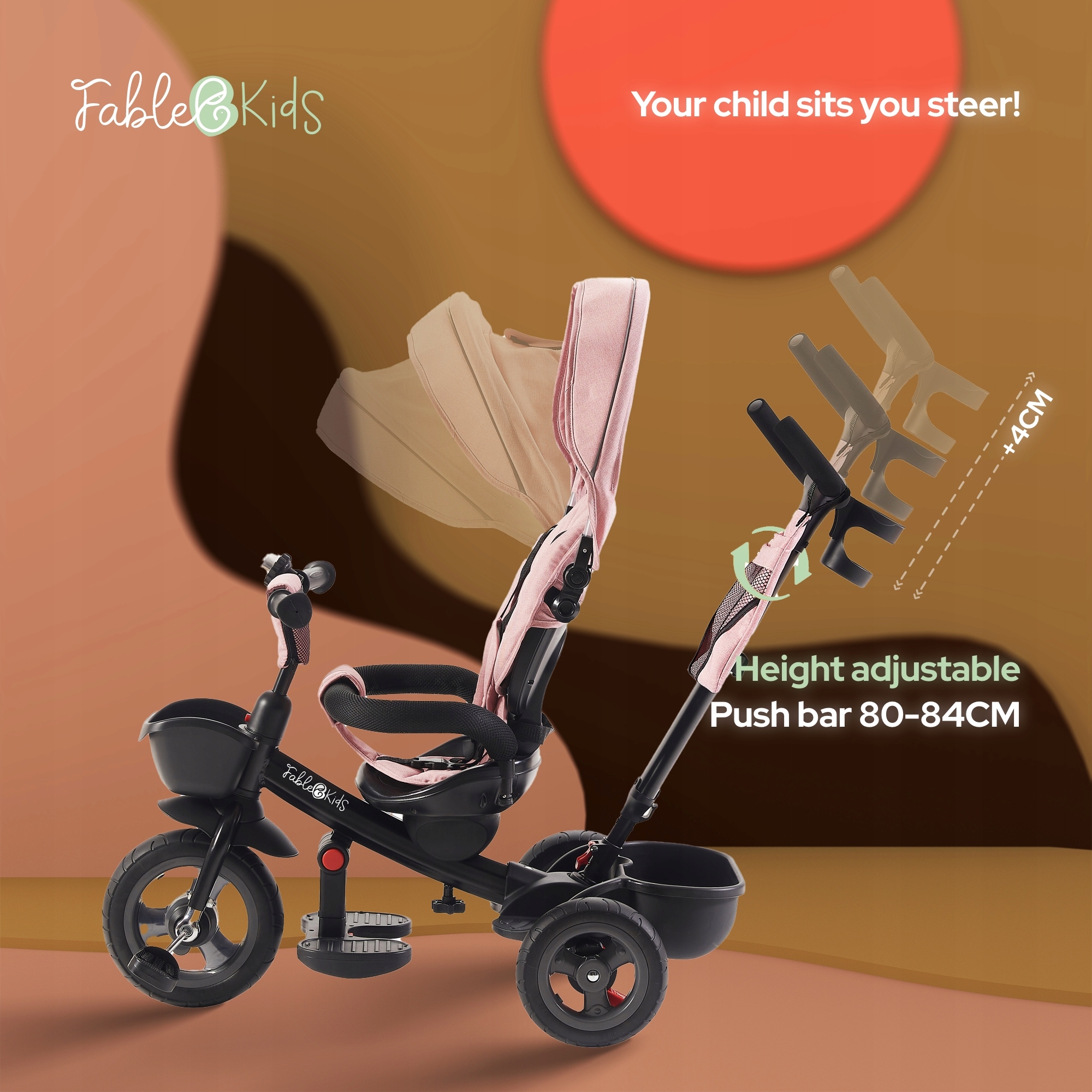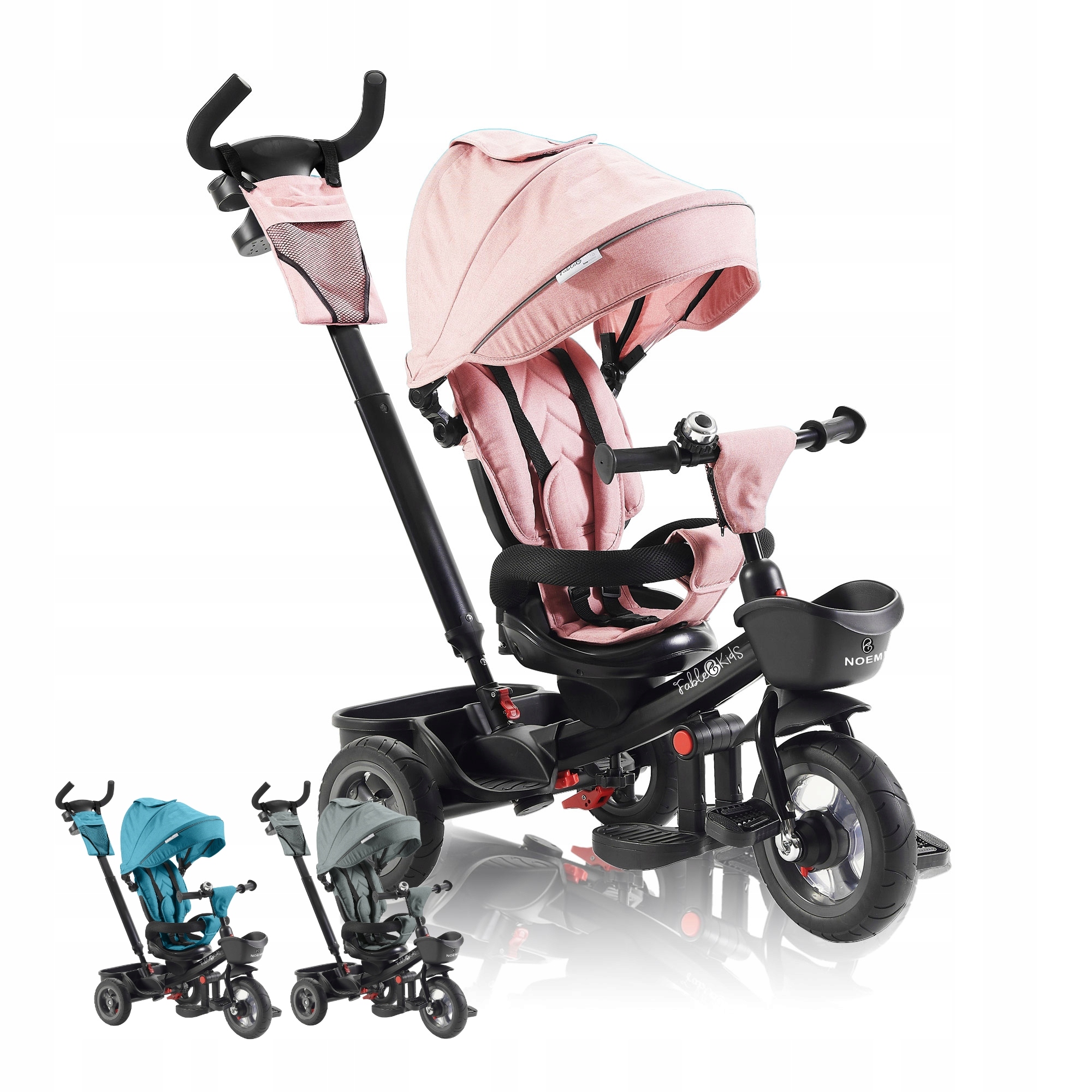 Сидіння можна повернути на 360 °, тому, якщо потрібно, ви можете повернути дитину у напрямку, наприклад. щоб заспокоїти їх. Дитяче сидіння з 3-бальною ременем безпеки м'яко підкладене і покрите 600D Оксфорд! Крім того, кермо має ручки, що не мають ковзання.