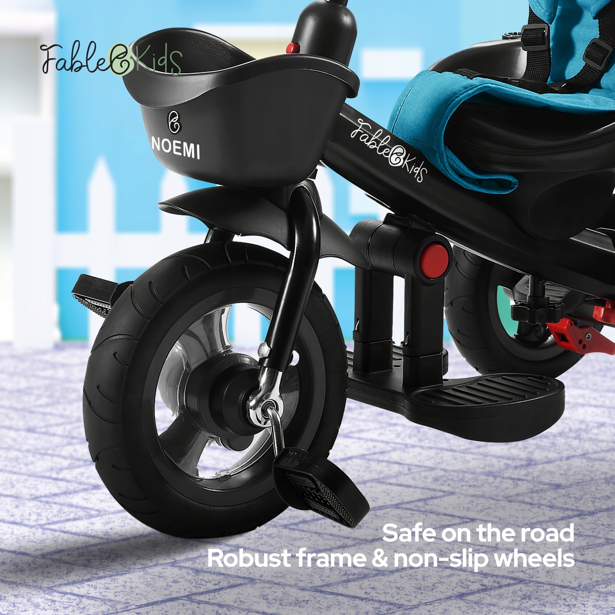 Три -колесо велосипед для дітей використовує великі та широкі гумові шини з підвищеною міцністю, що підходить для різних складних дорожніх умов і має хорошу ефективність амортизації. Гальма на задніх колесах забезпечують безпеку під час перерв у проведенні та вставці дитини всередину та потрапляння всередину