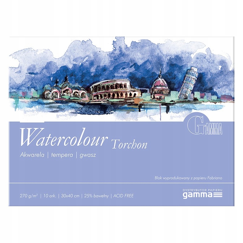 Ідеально для роботи з акварельними фарбами. Його вага дозволяє використовувати велику кількість води без страху перед деформацією. Склеєна з 4 боків. 10 аркушів у форматі 30 х 40 см, вага 270 г.