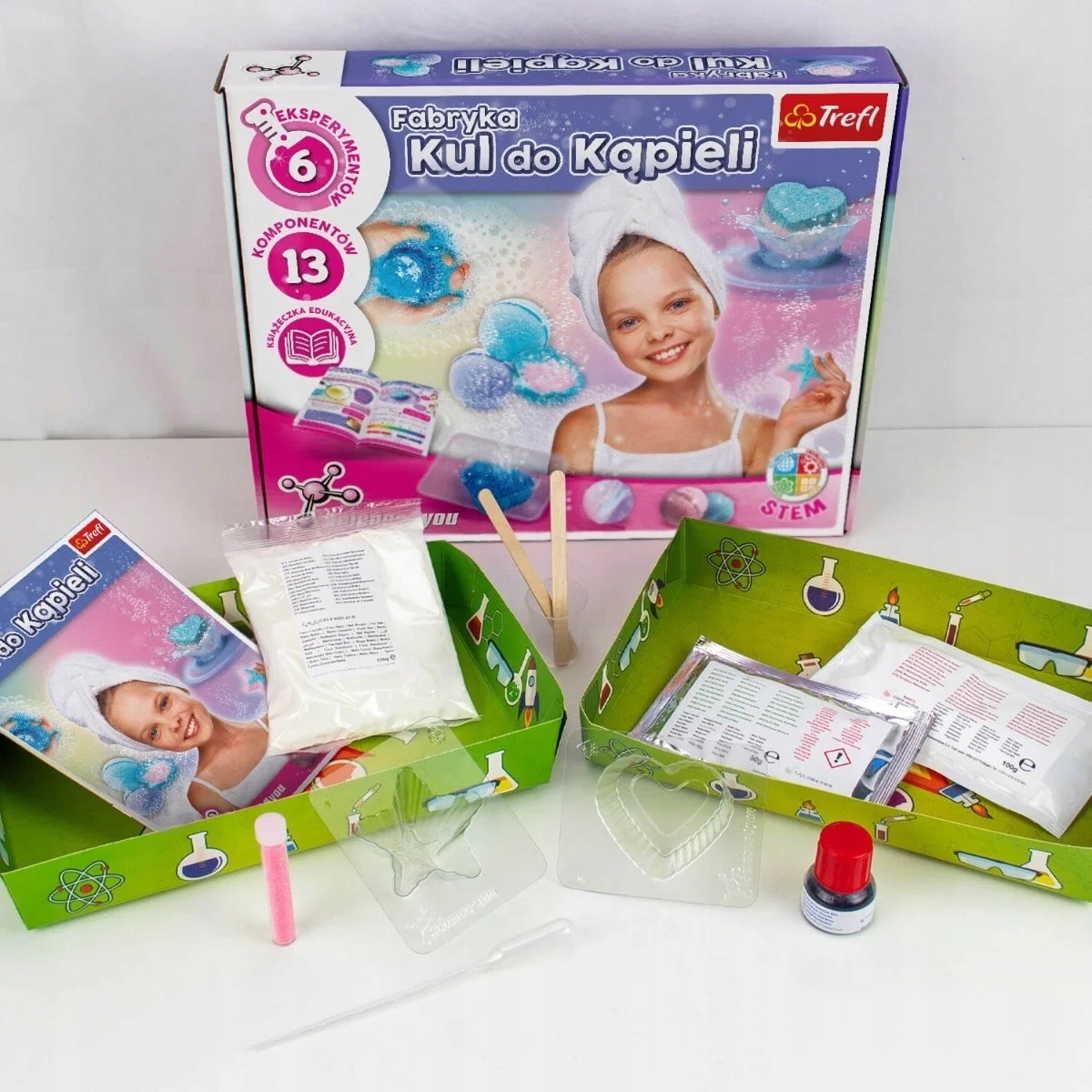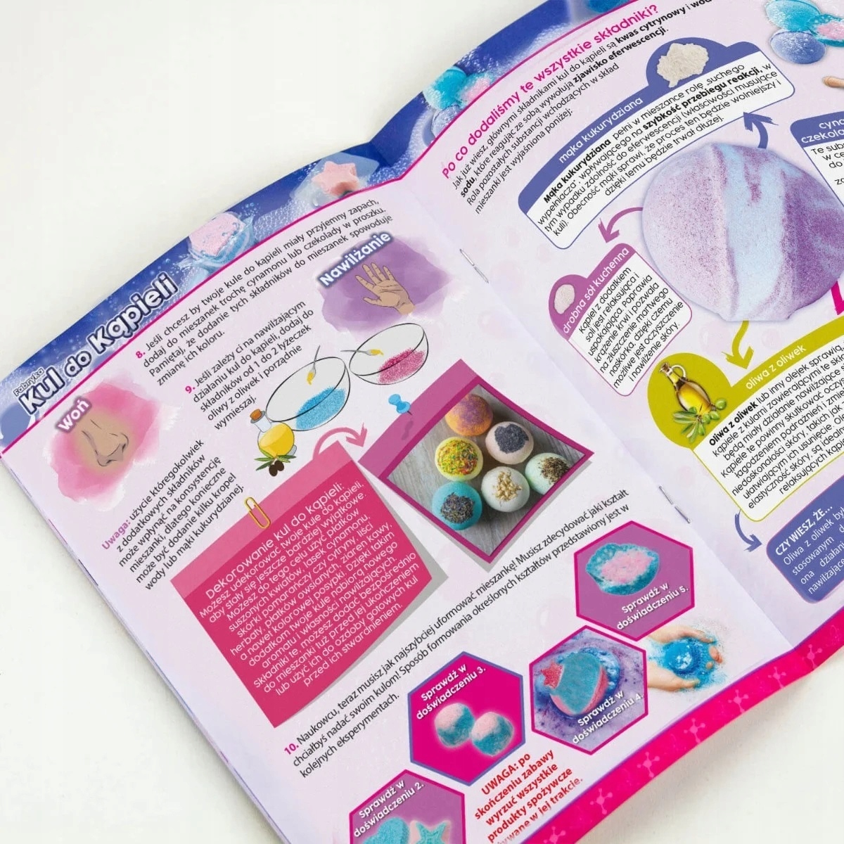 З набором Фабрика бомб для ванн Science4you ви дізнаєтеся, що таке бомбочки для ванн, хто їх винайшов, коли і що аспірин мав до цього якесь відношення? Чи справді м’ячі мають бути кулеподібними?