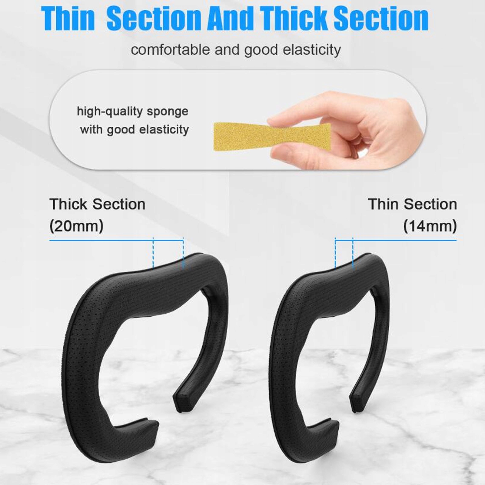 5. Різні варіанти: підтримка обличчя інтерфейсу гарнітури VR: приблизно на 1 см/0,4 дюйма ширше, з тонкою моделлю та товстою моделлю, яку можна регулювати відповідно до комфорту вашого обличчя.