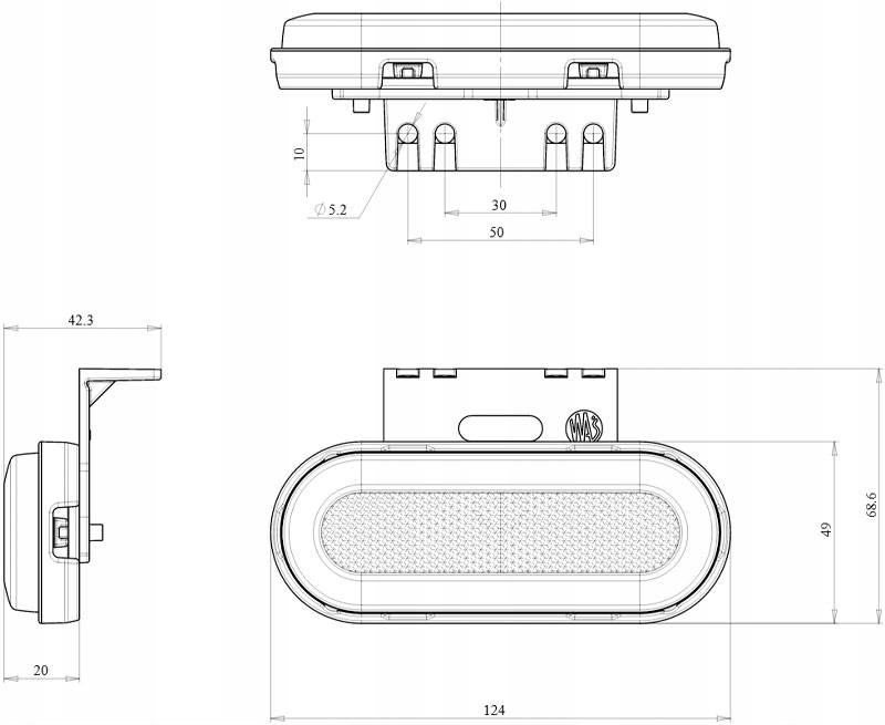 - Відстань між монтажними отворами: 30 мм і 50 мм