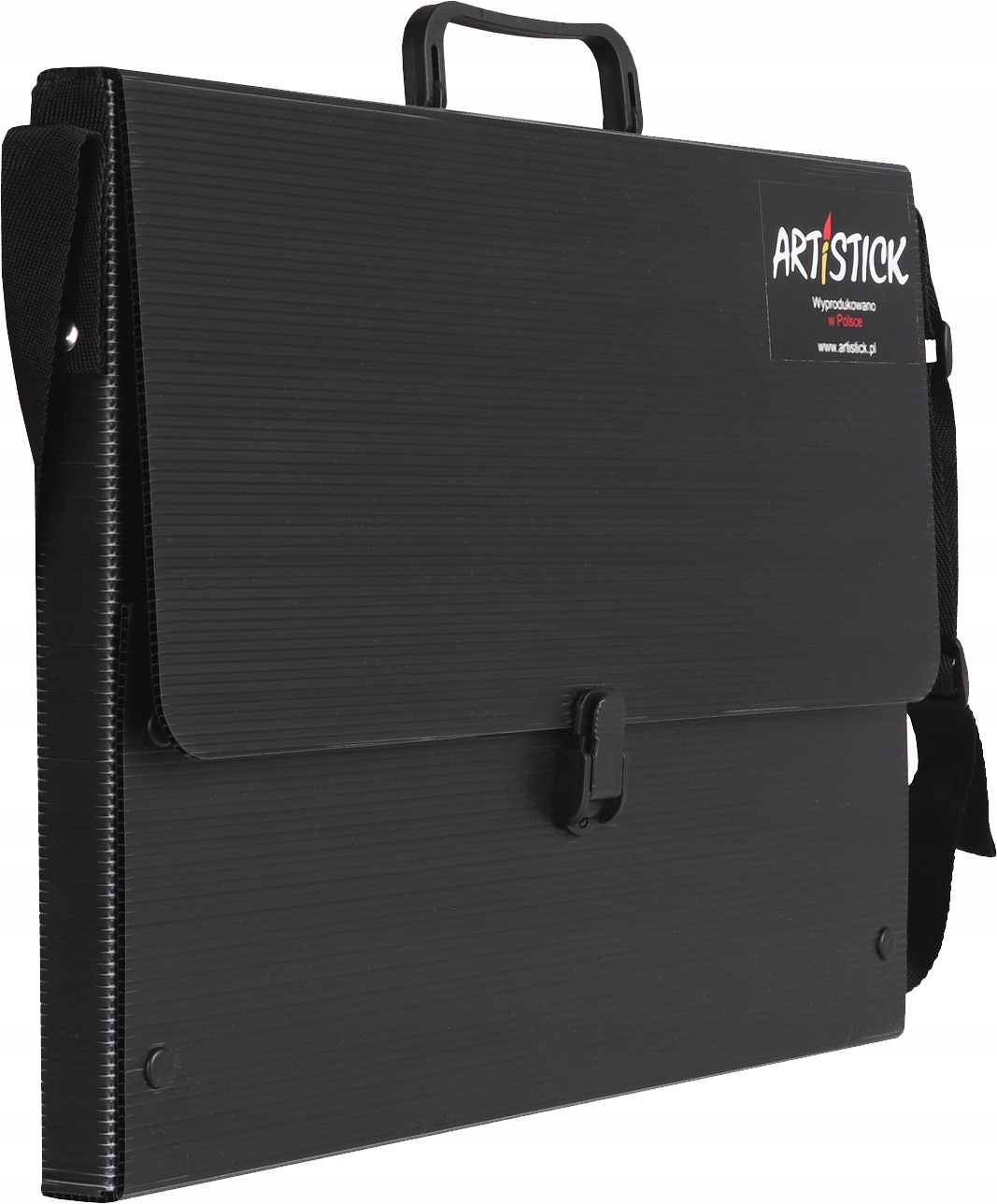 Поліпропіленова папка чорного кольору для малюнків формату А3. Ідеально підходить для зберігання та транспортування креслень документів. Портфель має регульований ремінь, що полегшує його перенесення. Портфель також має зручну ручку для перенесення. Портфель також оснащений застібкою. Виготовлений з пустотілої плити товщиною 3 мм. Дошка має УФ та антистатичну добавку.