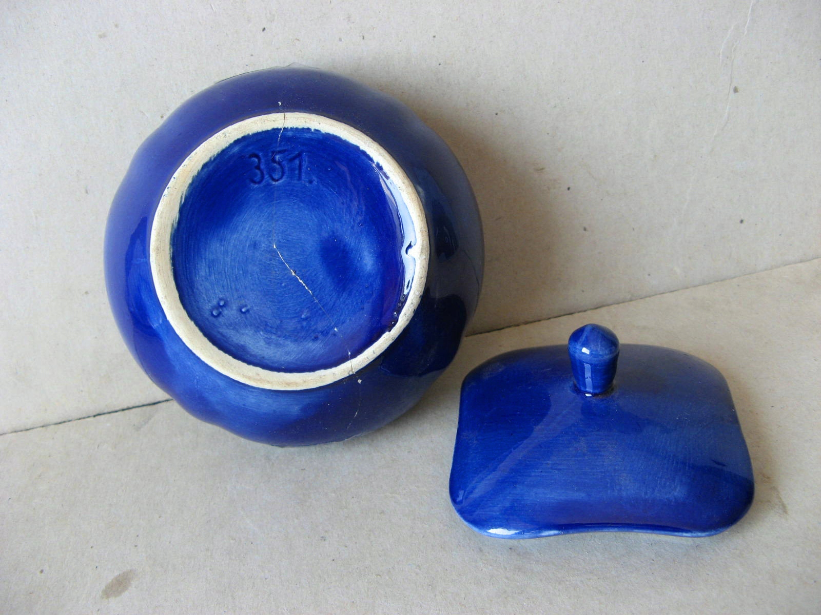 Fajans WŁOCŁAWEK : Cukiernica BOMBONIERA szkatułka nr katalog 351 KOBALTOWA