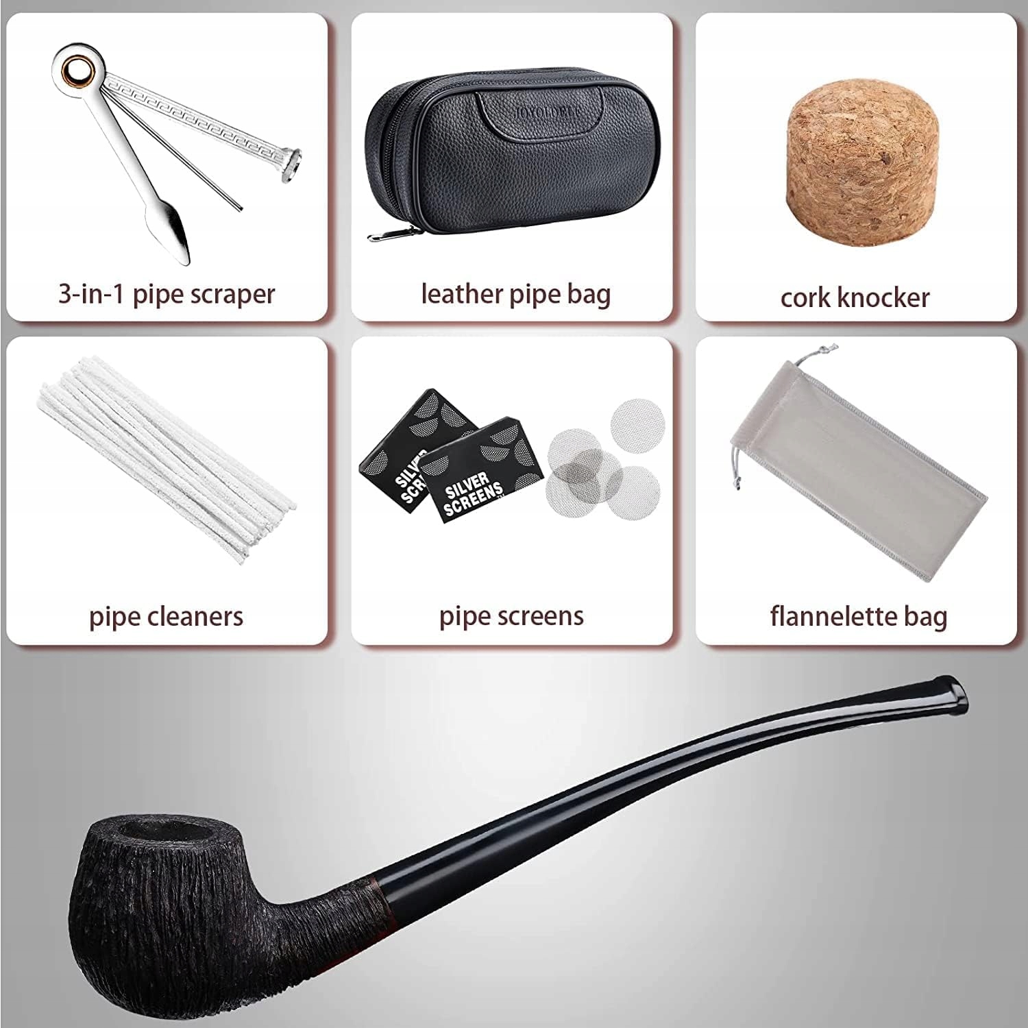 FAJKA DREWNIANA DO PALENIA TYTONIU AKCESORIA CZYSZCZĄCE SKÓRZANY POKROWIEC