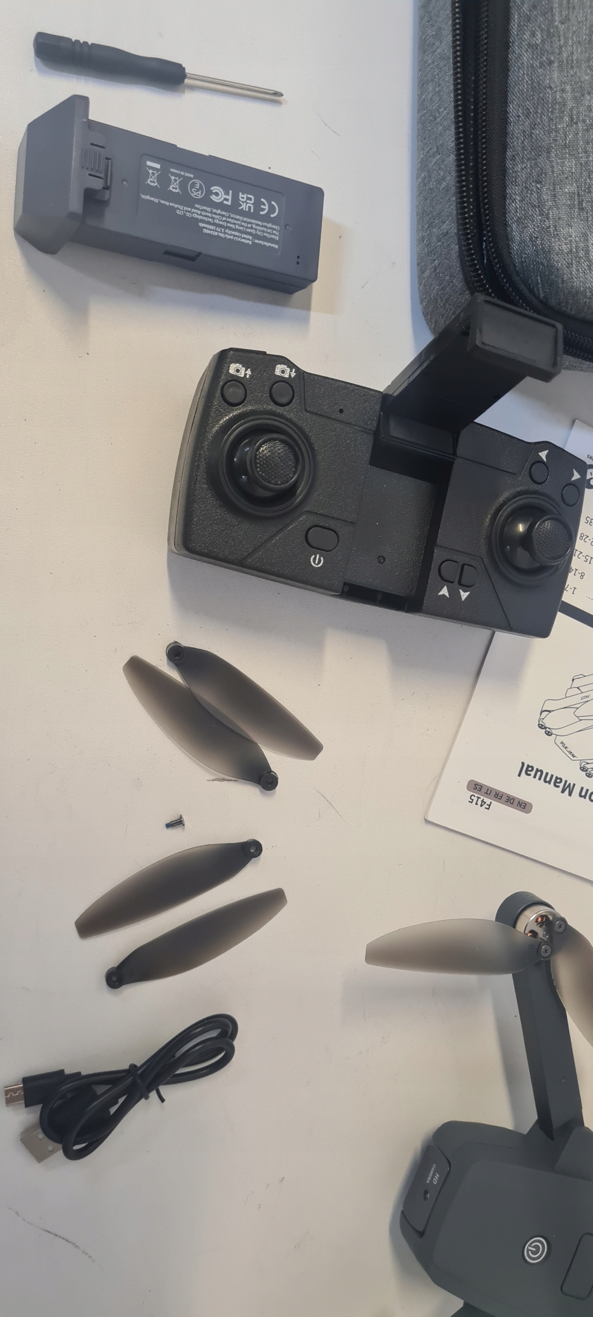 Дрон F415 оснащений двома акумуляторами, що дозволяє збільшити час польоту. Одна батарея забезпечує приблизно 20-25 хвилин польоту.