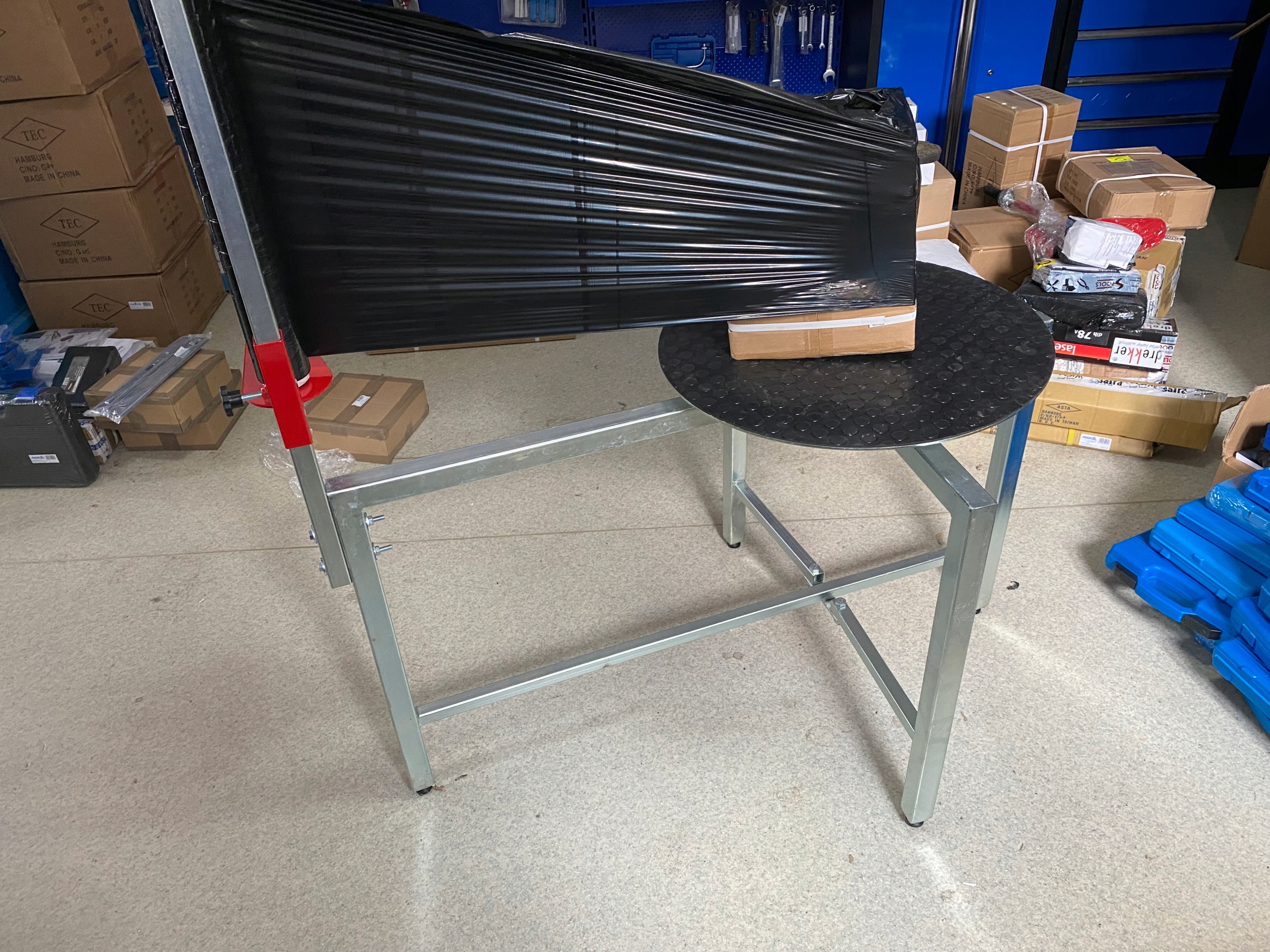 Обертовий СТІЛ ДЛЯ ПАКУВАННЯ ПАКЕТІВ. Машина для швидкого обгортання додатково оснащена натягувачем фольги з регульованою висотою.