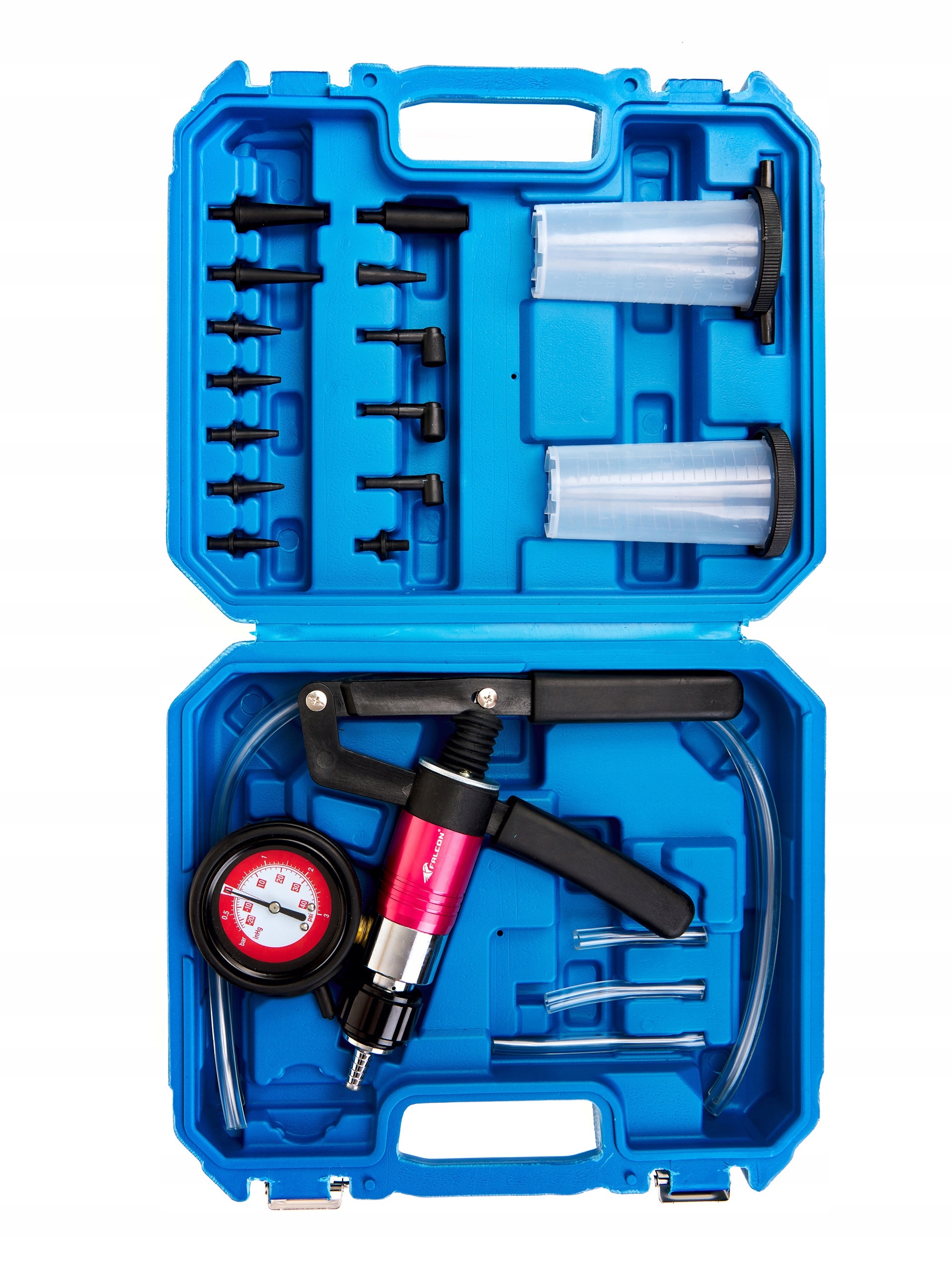 Опис інструменту: Ручний насос тиску та вакууму для заміни рідини і тестування вакууму, універсальний, з аксесуарами, у валізі