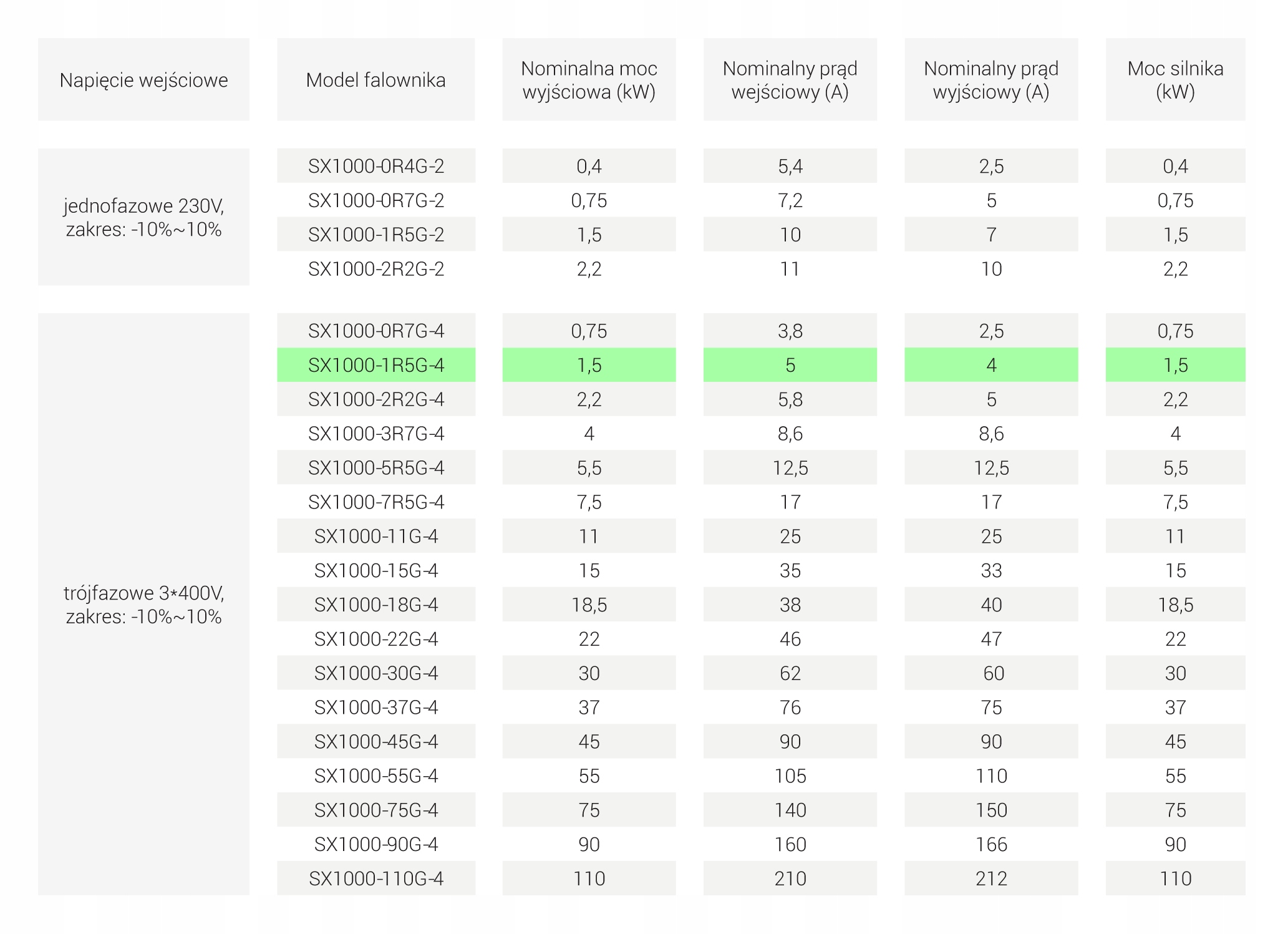 Falownik SANYU SX1000-1R5G-4 (3x400V, 1,5kW)