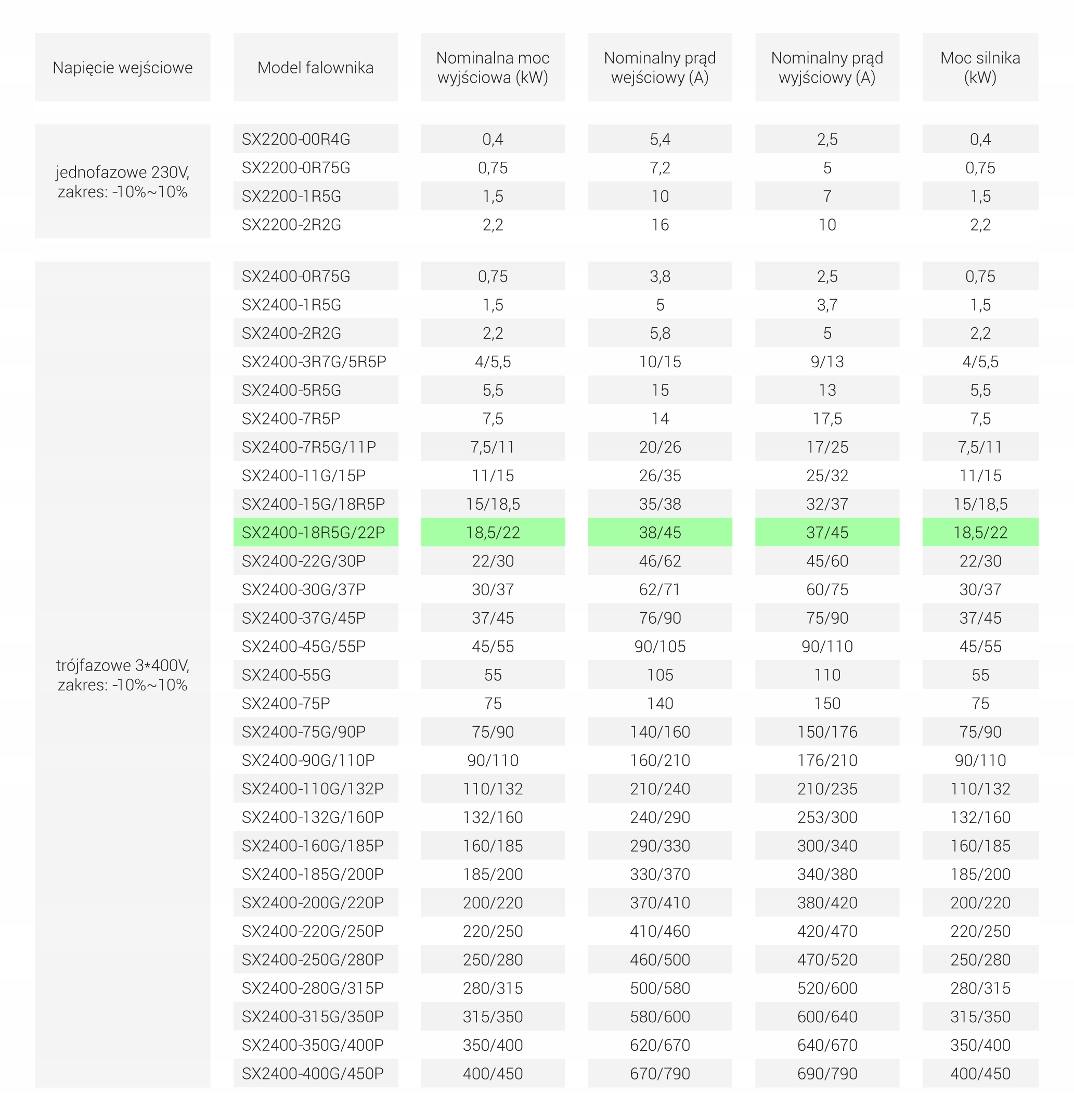 Falownik SANYU SX2400-18R5G/22P (3x400V, 18,5kW)