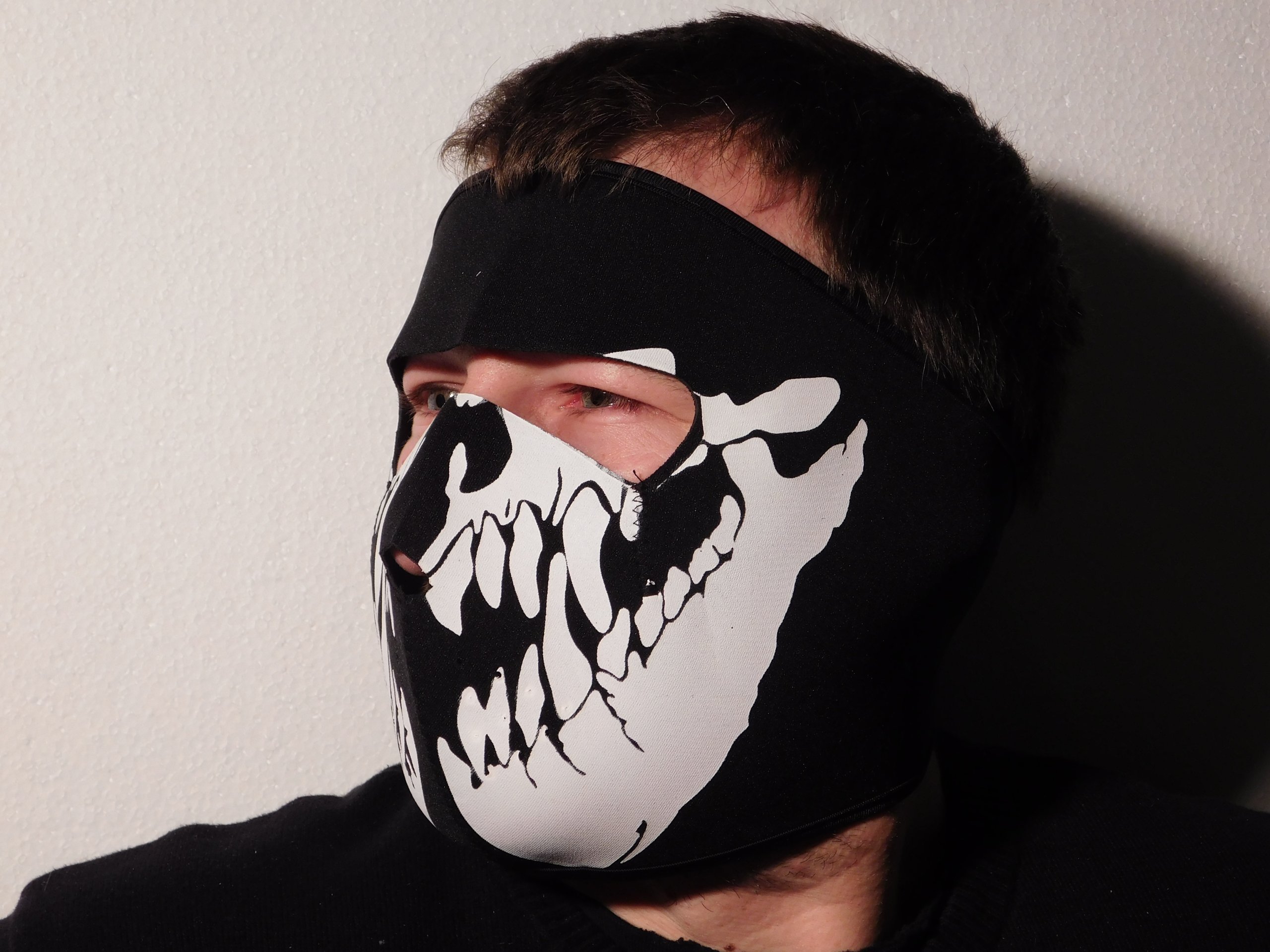 Маска застібається на дві липучки, завдяки яким ми можемо регулювати її окружність до голови.