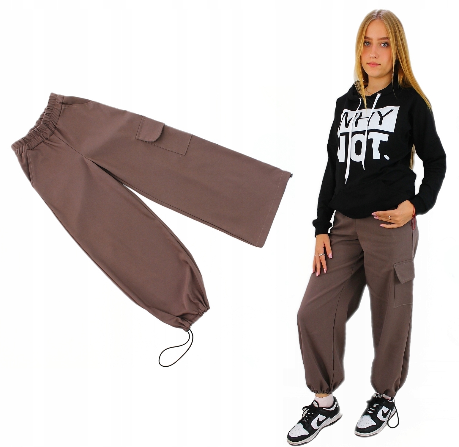 ШТАНИ З ОСТАННЬОЇ КОЛЕКЦІЇ ПОЛЬСЬКОГО ВИРОБНИКА. СИМУДНІ ШИРОКІ ШТАНИ FANGO З КИШЕНЯМИ НА ТАЛІЇ. В ШТАНАХ Є ГУМКА. НОЖИНА БРЮК ПРЯМА, ШИРОКА, РОЗРІЗАНА НА НАЙМОДНІШУ МОДЕЛЬ БРЮК ЦЬОГО СЕЗОНУ