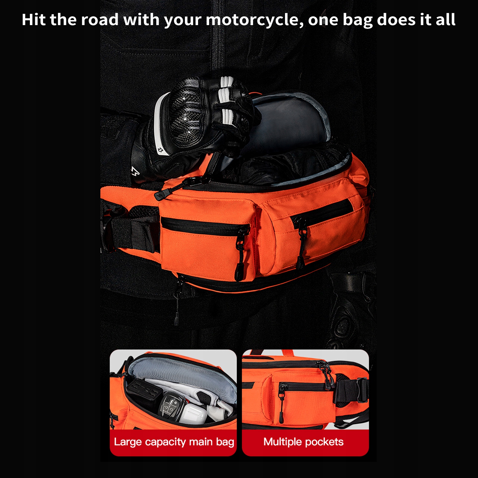 Функція:1. Преміальний матеріал: мотоциклетна поясна сумка виготовлена з водонепроникної тканини Оксфорд і поліестеру, стійкого до подряпин і зносу, що забезпечує довговічність і практичність сумки і робить її ідеальним вибором для тривалого використання.