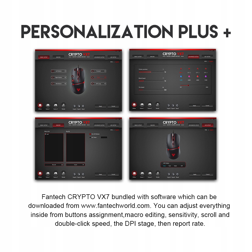 CRYPTO VX7 — чудова ідея подарунка. Ігрові миші з простим стилем стають все більш популярними і стають бажаним елементом для кожного поважаючого себе гравця, готового проводити довгі години на віртуальних полях битв. Продукція FANTECHA вирізняється з-поміж інших своєю надзвичайною якістю. І все це буде запаковано в гарну, витончену упаковку, що робить наш набір ідеальним подарунком. Виберіть продукт CRYPTO VX7, щоб легко надати своїй комп’ютерній станції абсолютно новий, оригінальний характер.