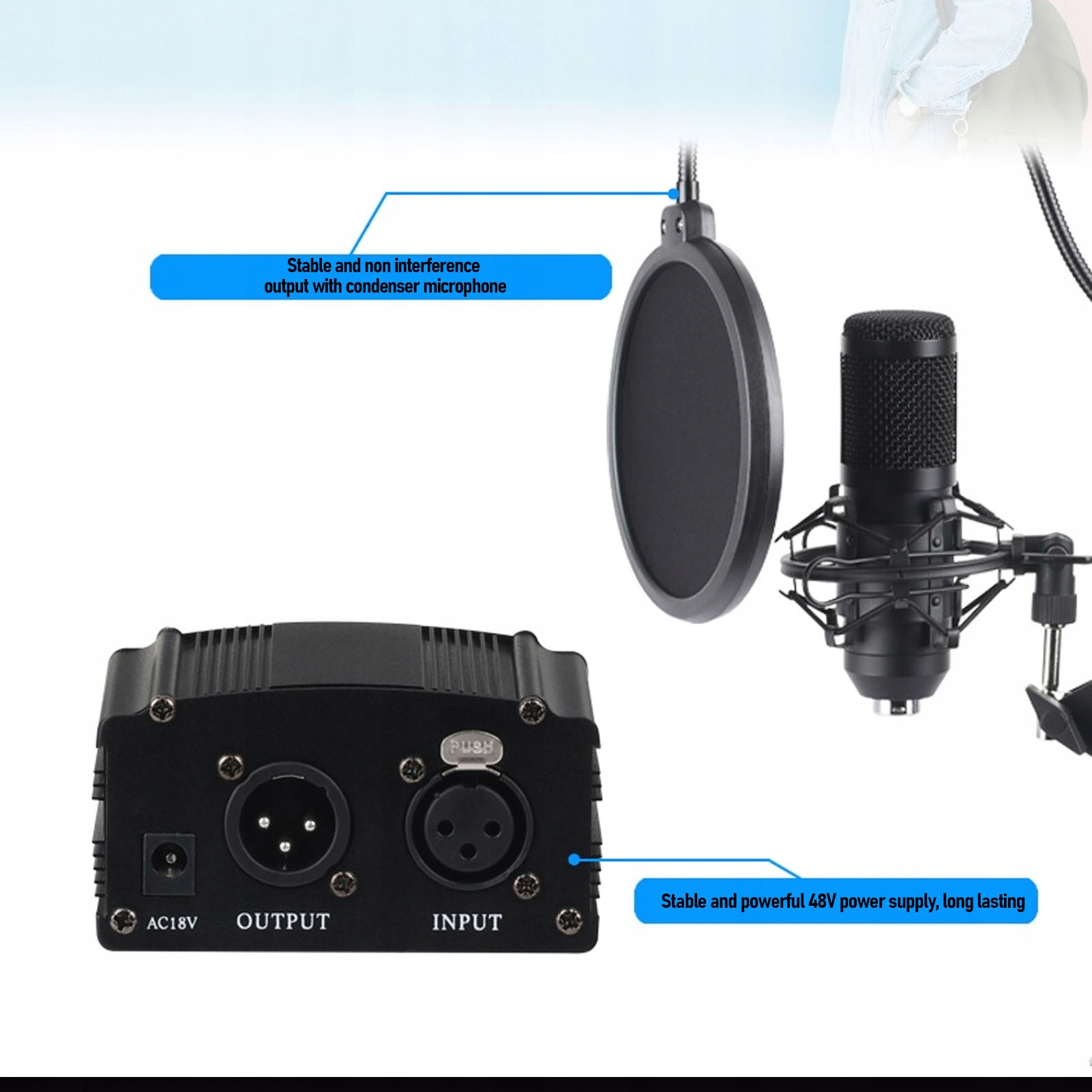 4. Робота Plug and Play: Керувати фантомним живленням конденсаторного мікрофона просто. Під’єднайте кабель живлення, підключіть звуковий пристрій до джерела живлення 48 В через кабель XLR і натисніть кнопку живлення, щоб почати.