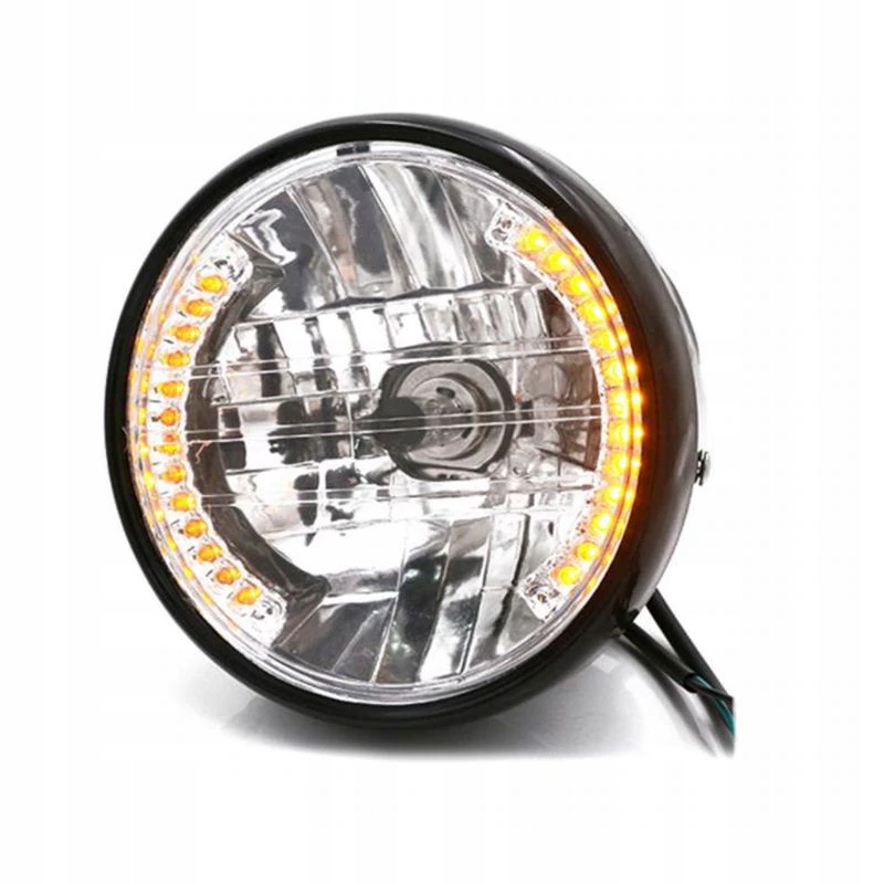 Сучасний дизайн лампи надасть кожному мотоциклу свіжий і привабливий вигляд. Цей продукт призначений для людей, які хочуть досягти унікального вигляду своїх мотоциклів. Лампа містить лампу H4 потужністю 35 Вт з коротким і дальнім світлом, а також світлодіодними покажчиками повороту.