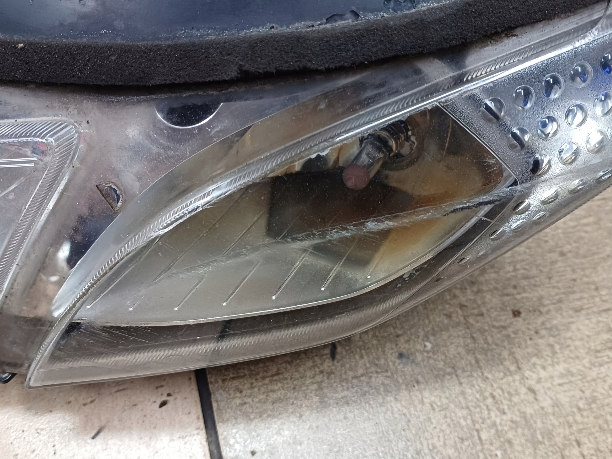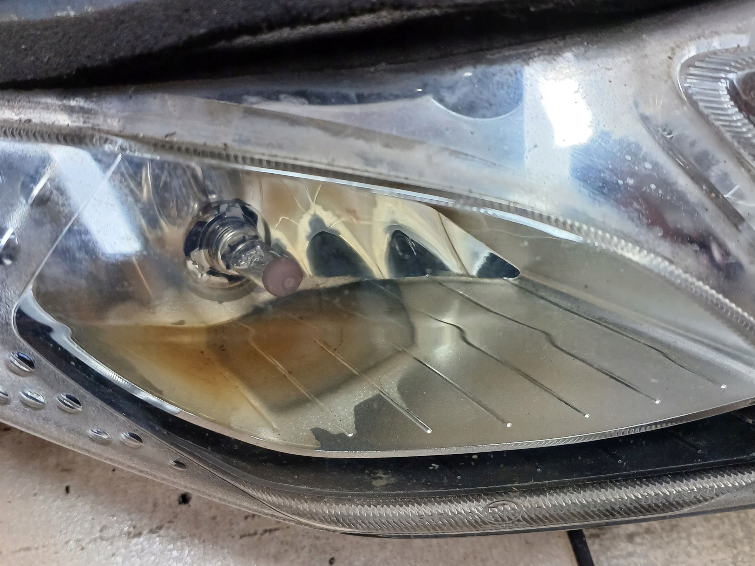 Є пошкодження, видимі на фото, обгорілий відбивач, подряпини та тріщини на абажурі. Задня кришка в порядку (одна зламана вкладка)
