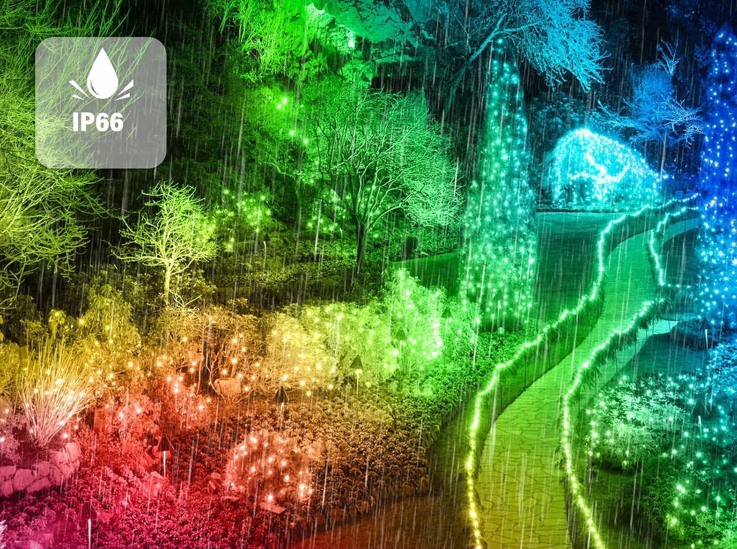 Водонепроникність за стандартом IP66: наш RGB-прожектор захищений від води та пилу. Він може працювати при температурах від -20°C до 45°C і витримувати складні погодні умови, такі як злива, сніг або мороз. Ідеально підходить для освітлення інтер’єрів, відкритих просторів, садів, терас, коридорів, балконів і вечірок.