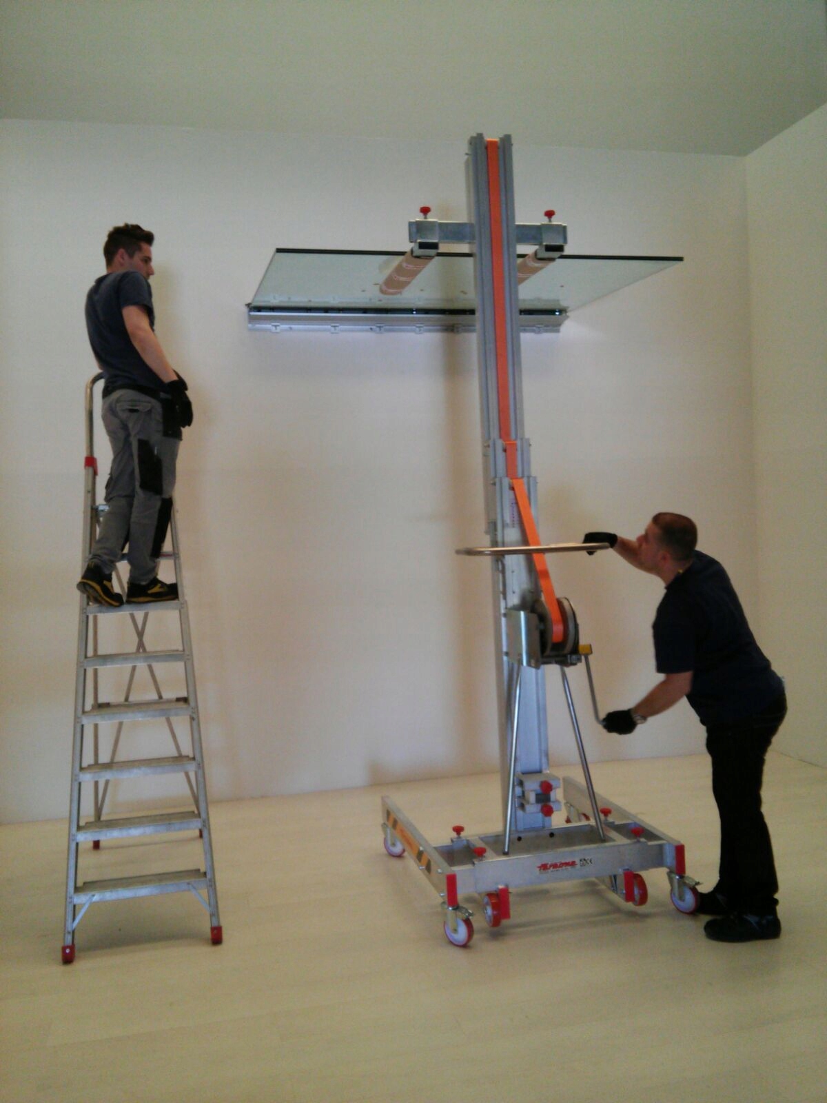 Ліфт виготовлений з алюмінію. Його легко переміщати завдяки поворотним колесам із гальмом.