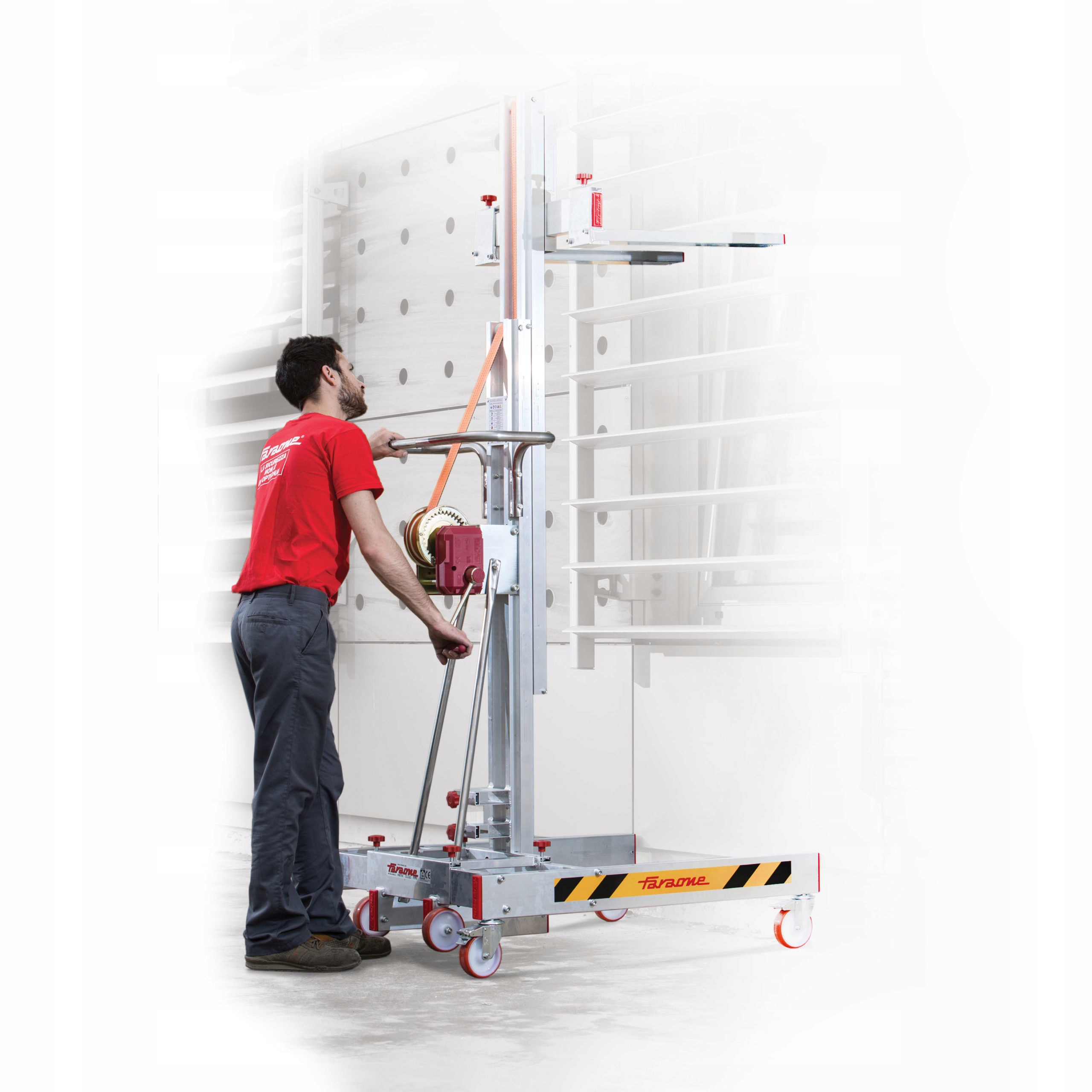Ергономічний дизайн підйомника дозволяє одній людині піднімати та переносити великі вантажі.