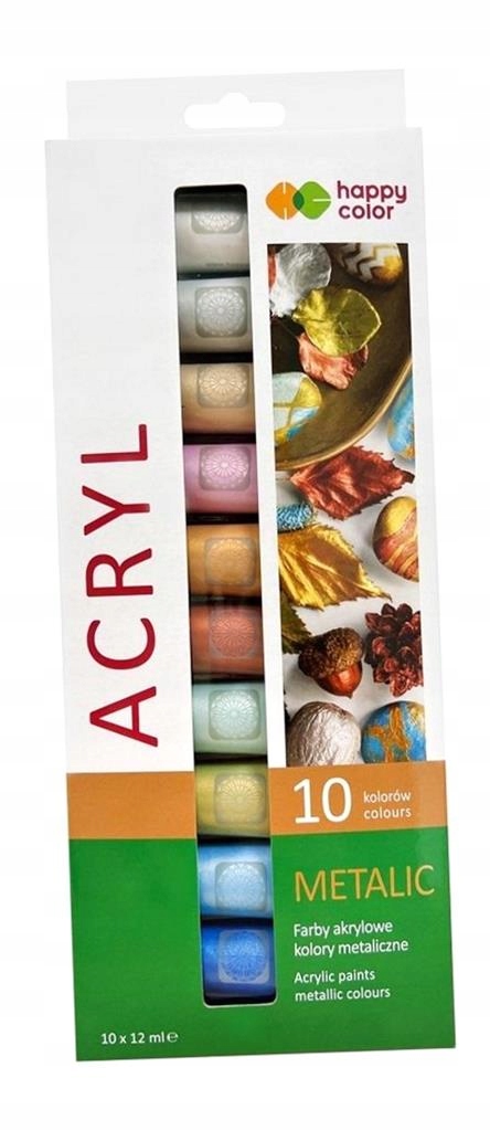 ФАРБА АКРИЛОВА 12 МЛ 10 КОЛІРІВ МЕТАЛІК HAPPY COLOR