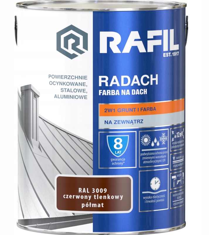 ФАРБА ДЛЯ ДАХУ RAFIL , ЧЕРВОНИЙ ОКСИД. PÓŁMAT 3009 5л