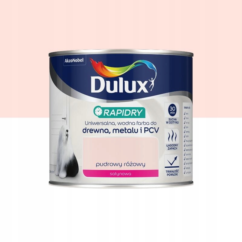 Dulux Rapidry — високоякісна фарба на водній основі, яка швидко висихає, для деревини, металу та ПВХ. Покриття висихає за 30 хвилин.