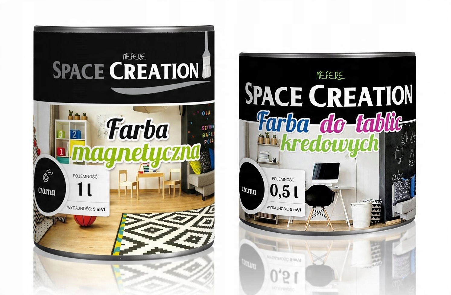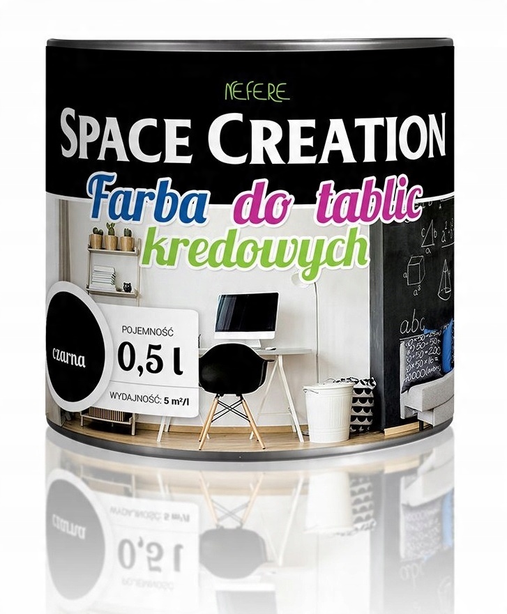 Ми представляємо чудову ідею для зміни та створення простору. Використання магнітної фарби Space Creation і фарби для дошки — чудова ідея для підвищення функціональності стін у дитячій кімнаті, на кухні або в громадських приміщеннях, таких як бар, ресторан чи школа. Завдяки використанню магнітної фарби можна прикрасити стіни декоративними магнітами, постерами або малюнками, а додатково, малюючи фарбою для дошки, можна писати на ній крейдою. Набору достатньо для підготовки дошки-магнітної стіни площею 2 м2.