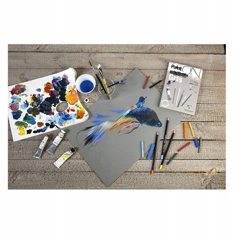 Paint ON Gris Multi–Techniques Clairefontaine A2 – універсальний мікс-медіа блок. Папір сірий, 250 г. Для малювання та водоемульсійних фарб. 100% целюлоза.
