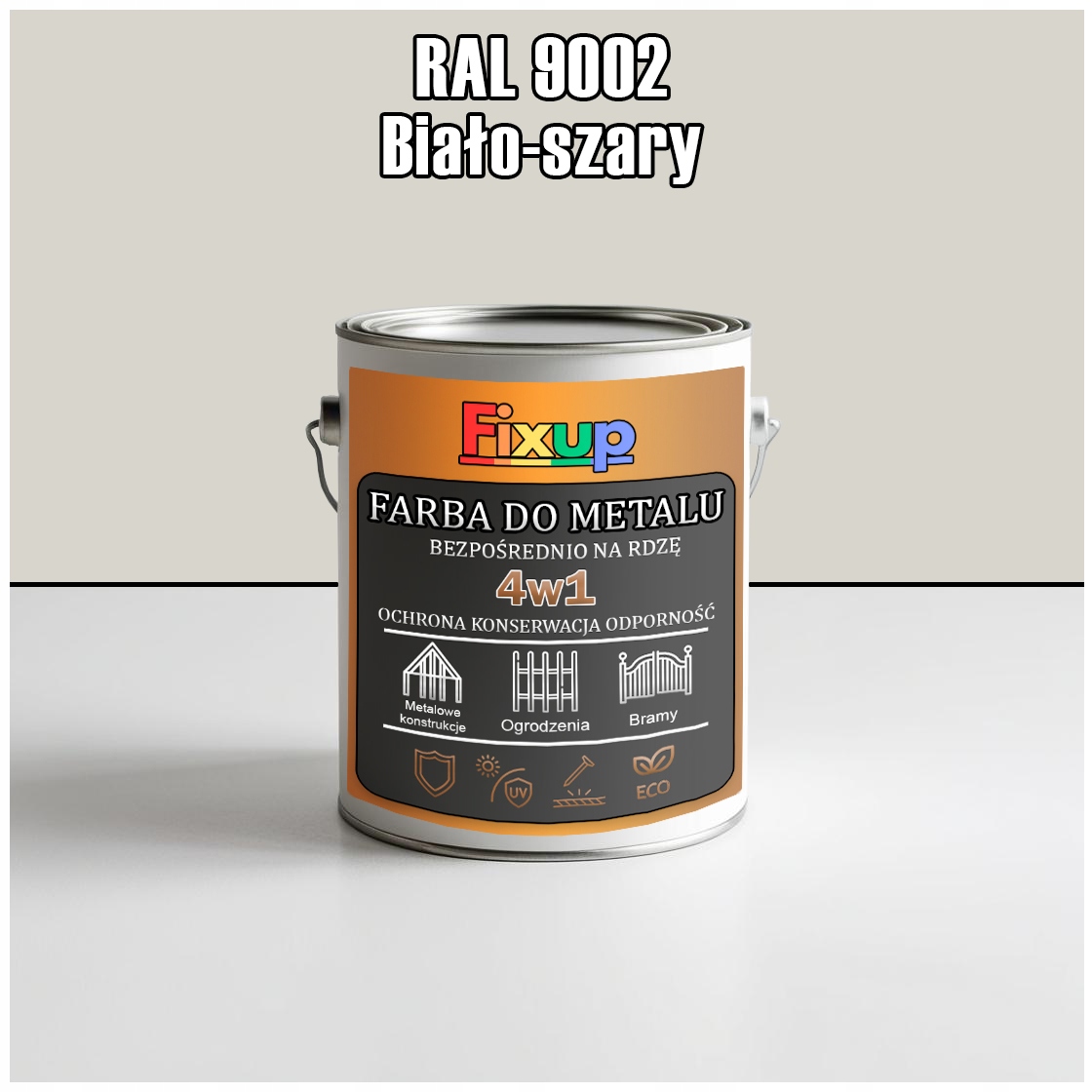 ФАРБА ПО МЕТАЛУ ДЛЯ ІРЖІ МЕТАЛ ОЦИНКОВАНА СТАЛЬ 4В1 БІЛИЙ СІРИЙ RAL9002 ГЛЯНЕЦЬ 1Л