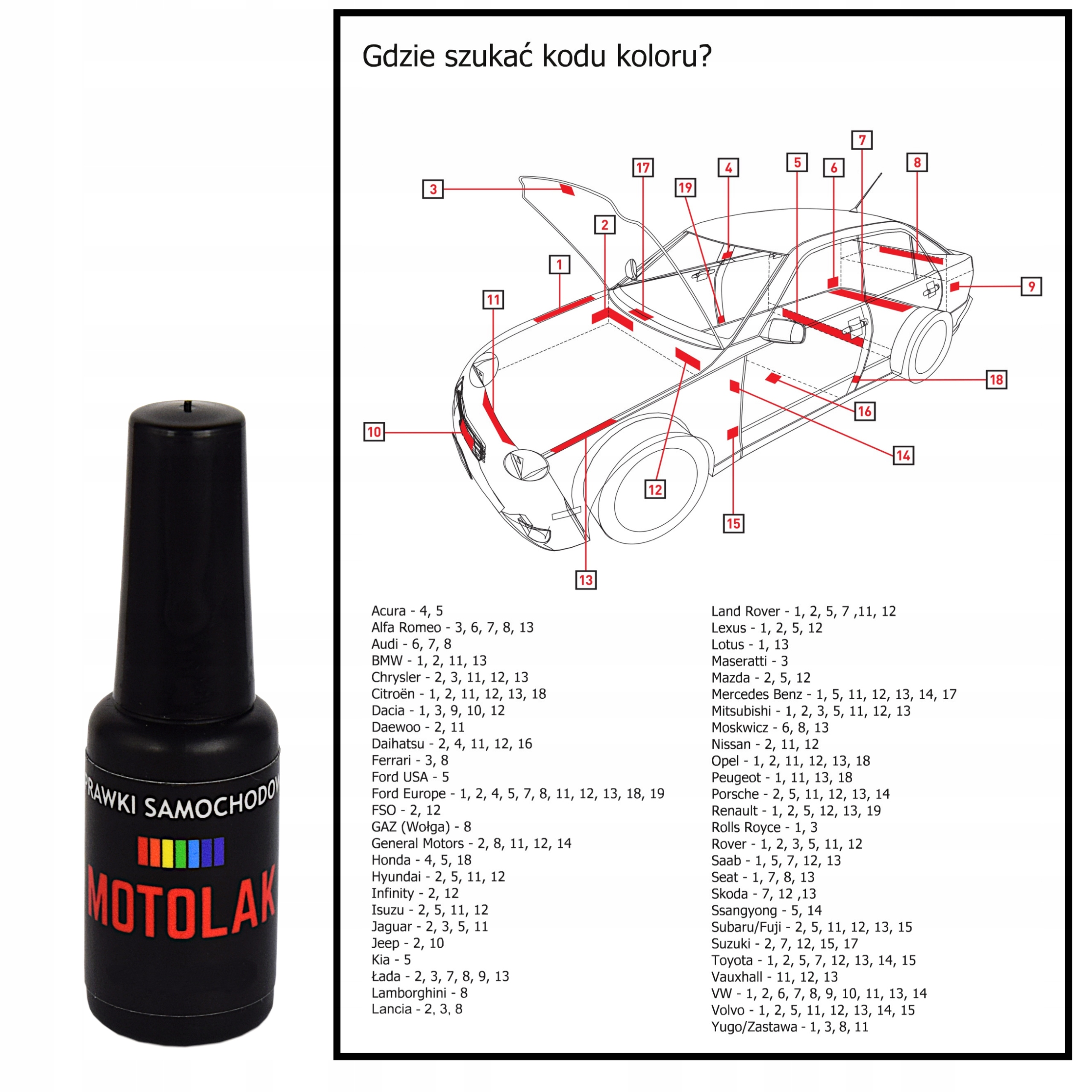 Лаки торгової марки MOTOLAK виготовляються з компонентів найвищої якості. Вони забезпечують належне покриття та блиск без необхідності використання прозорого лаку. Вони також мають дуже хороше зчеплення. Упаковка забезпечує захист від УФ-випромінювання.