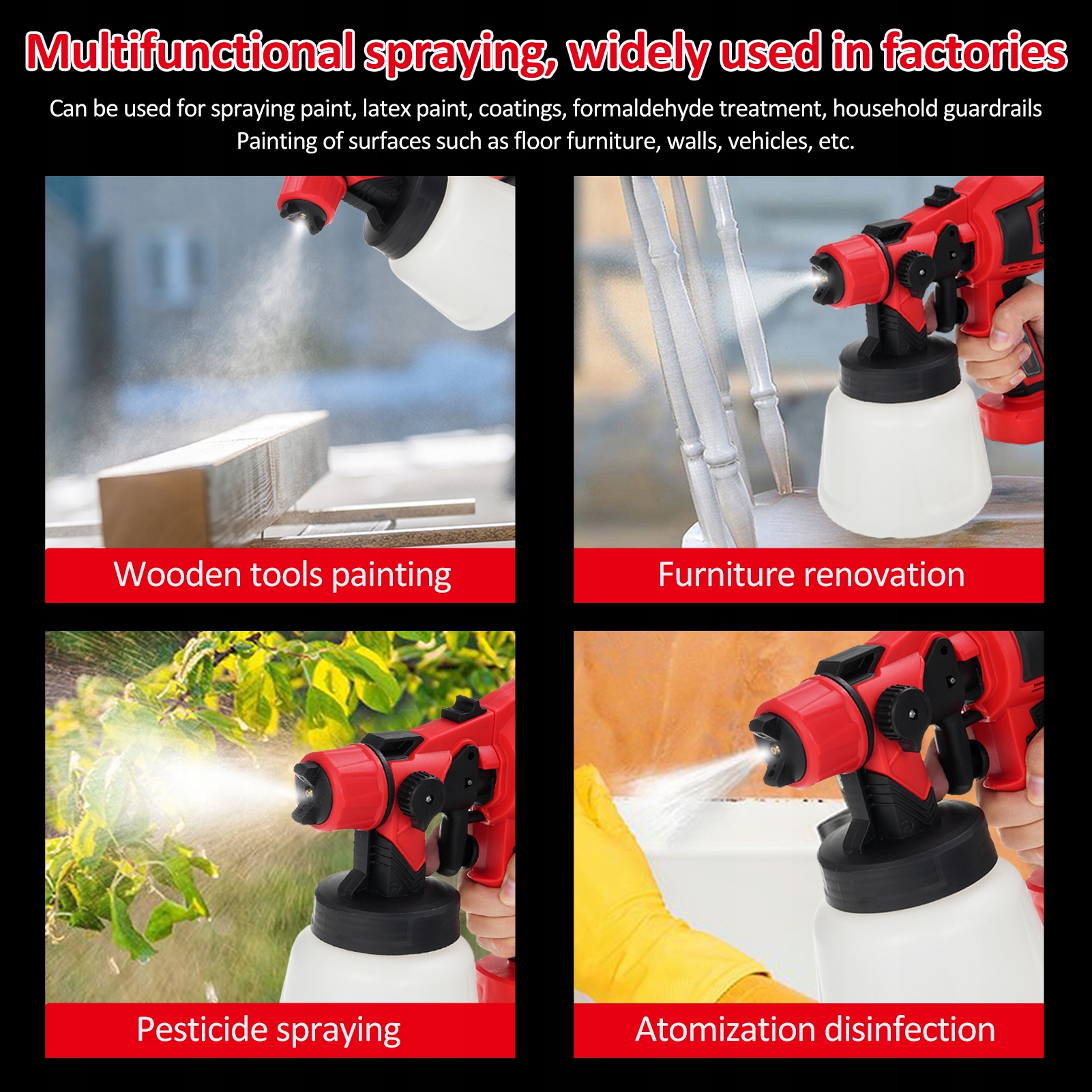 5. підходить для: оснащений великою ємністю ємності, оснащеним 1400 мл, він може бути заповнений фарбою без необхідності часто додавання, підвищення ефективності роботи. Підходить для розпилення різних поверхонь, таких як внутрішні та зовнішні меблі, огорожі, стіни тощо, щоб задовольнити різні потреби.