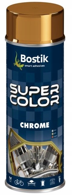 Акриловий лак у спреї Super Color Chrome від заводу BOSTIK підходить для використання всередині приміщень на таких поверхнях, як сталь, метали, природний камінь, кераміка, дерево, скло, а також деякі види пластмас. Його можна використовувати для покриття елементів обробки в будинку, рам, скульптур і т. д. Акриловий лак BOSTIK з ефектом хрому доступний в трьох універсальних кольорах: мідний хром, золотий хром, срібний хром. Фінішне покриття лаку після висихання описується як «напівматове».