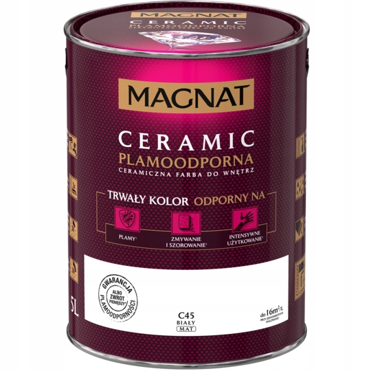 MAGNAT CERAMIC - це високоякісна інноваційна фарба для кераміки, стійка до плям. Його основу складають керамічні компоненти та найякісніші смоли та пігменти. Ця унікальна формула забезпечує фарбі стійкий колір, стійкий до: плям, миття та чищення, а також інтенсивного використання.