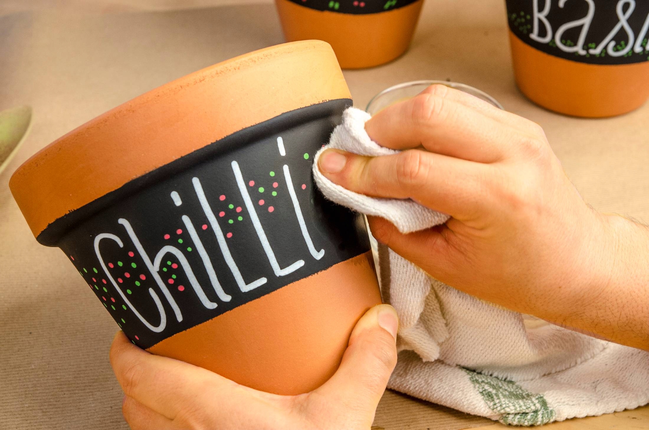 - Після того, як пофарбована поверхня повністю висохне, покрийте всю поверхню стороною крейди, а потім видаліть її вологою тканиною. Це покращить стирання крейдяної дошки.