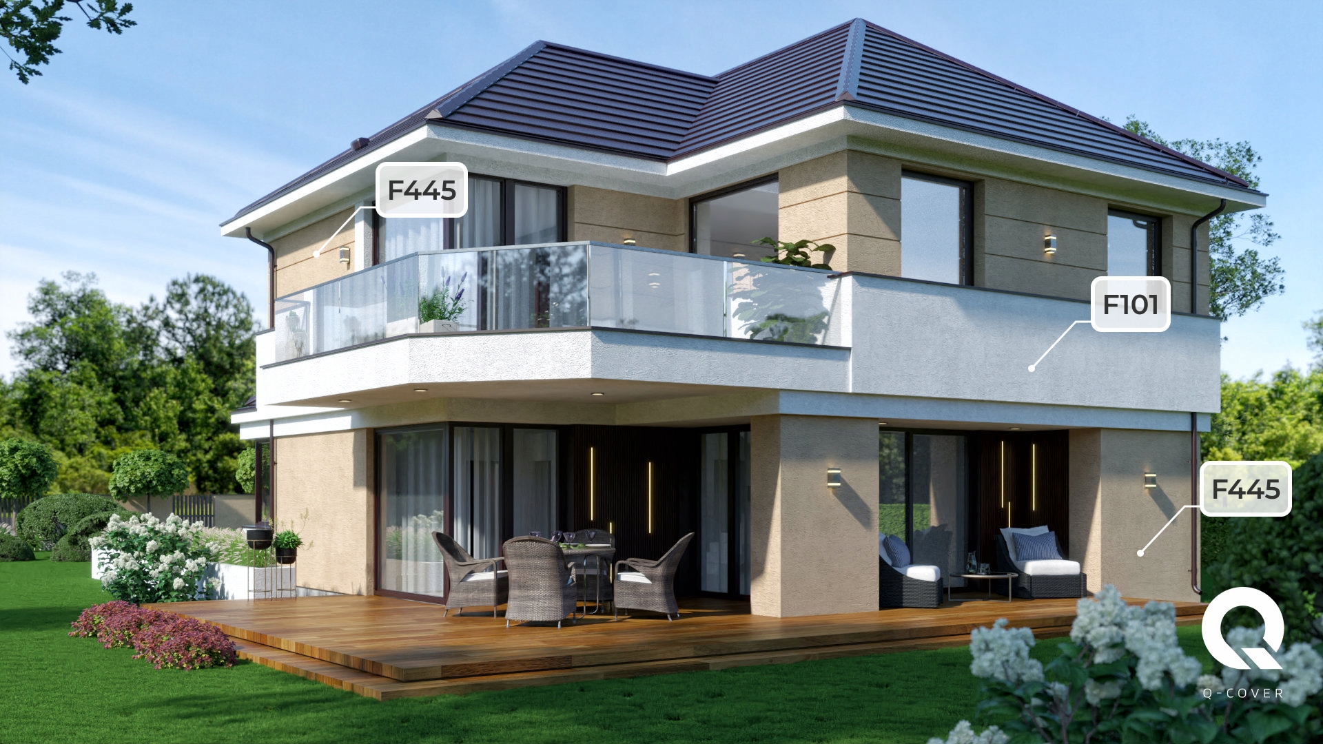 Необмежена кількість відтінків, включаючи 215 відтінків із палітри Q-Facade Colors.