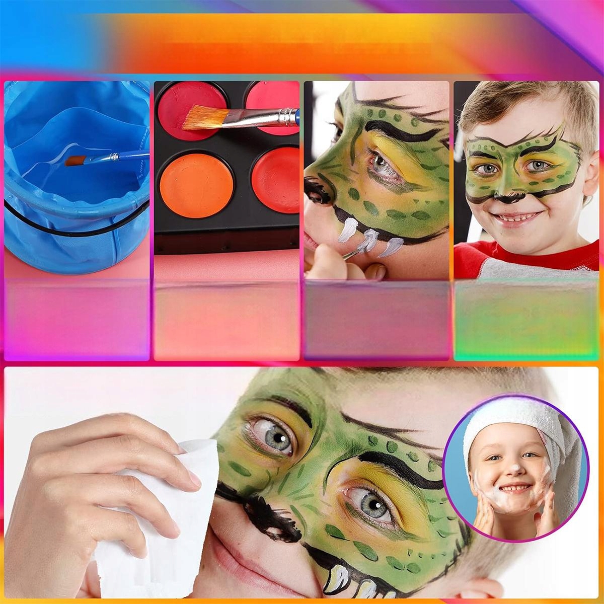 Цей набір для малювання обличчя підходить усім дітям і дорослим із чутливою шкірою. Нетоксичний і безпечний у використанні. Гіпоалергенний, приємний на шкіру, не викликає свербіння та подразнення шкіри. Безпечний і ніжний для чутливої шкіри. Він пройшов суворі сертифікати та випробування CE-EN71 і SDS, що гарантує здоров’я та безпеку!